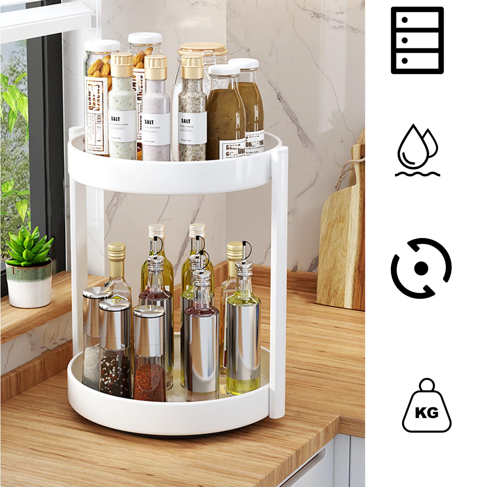 JOUING Drehteller Organizer Gewürzregal Drehbar 2 Etagen Metall Lazy Susan für Schrank Drehbares Gewürzregal für Küche Organizer für Kosmetik, Badezimmer (Weiss)