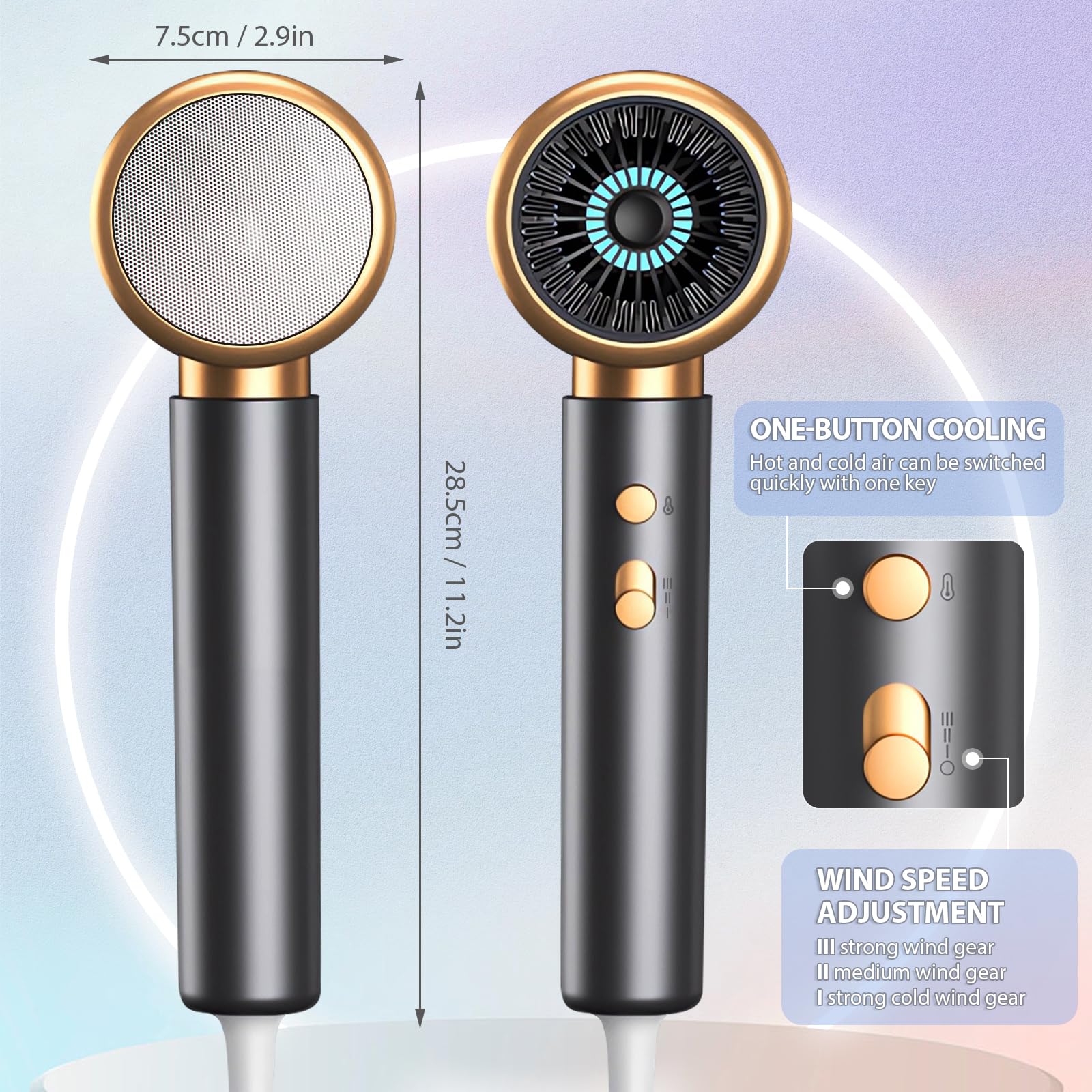 ProduktbeschreibungJourneyside Haartrockner – 2000 W Haartrockner trocknet das Haar schnell – für langanhaltendes Styling und voluminöses StylingIntelligente Haarpflege mit konstanter Temperatur – Der elektrische Heizdraht verteilt die Wärme gleichmässig, um eine konstante Temperatur aufrechtzuerhalten und Haarschäden vorzubeugen.Doppelter Schutz: Wenn die Temperatur zu hoch ist, brennt die Sicherung des Haartrockners durch und der Haartrockner funktioniert nicht mehr. Wenn der Lufteinlass des Haartrockners blockiert ist und eine hohe Temperatur entsteht, schaltet sich der Haartrockner automatisch aus und nimmt den Betrieb nach dem Abkühlen wieder auf.Der Blaulicht-Negativionen-Haartrockner dreht sich mit hoher Geschwindigkeit. Setzt über 100 Millionen negative Ionen frei, um statische Elektrizität zu neutralisieren, Trockenheit und krauses Haar zu reduzieren und das Haar glatt und federnd zu machen.Schalenmaterial: ABSProduktgewicht: 480 GrammDas Set beinhaltet: Haartrockner + Stylingdüse + BedienungsanleitungVorschläge zur richtigen Verwendung eines Haartrockners:1. Versuchen Sie beim Ein- und Ausschalten des Haartrockners, Abstand zu Ihrem Kopf zu halten.2. Blockieren Sie bei der Verwendung nicht den Lufteinlass des Haartrockners.3. Länger als eine halbe Stunde ohne Medikamente anwenden. Wenn Sie es längere Zeit ununterbrochen verwenden möchten, hören Sie bitte zwischendurch auf.4. Bitte platzieren Sie den Haartrockner ausserhalb der Reichweite von Kindern.Sicherheitswarnung1. Blockieren Sie bei der Verwendung nicht den Lufteinlass des Haartrockners. 2. Bitte platzieren Sie den Haartrockner ausserhalb der Reichweite von Kindern.
