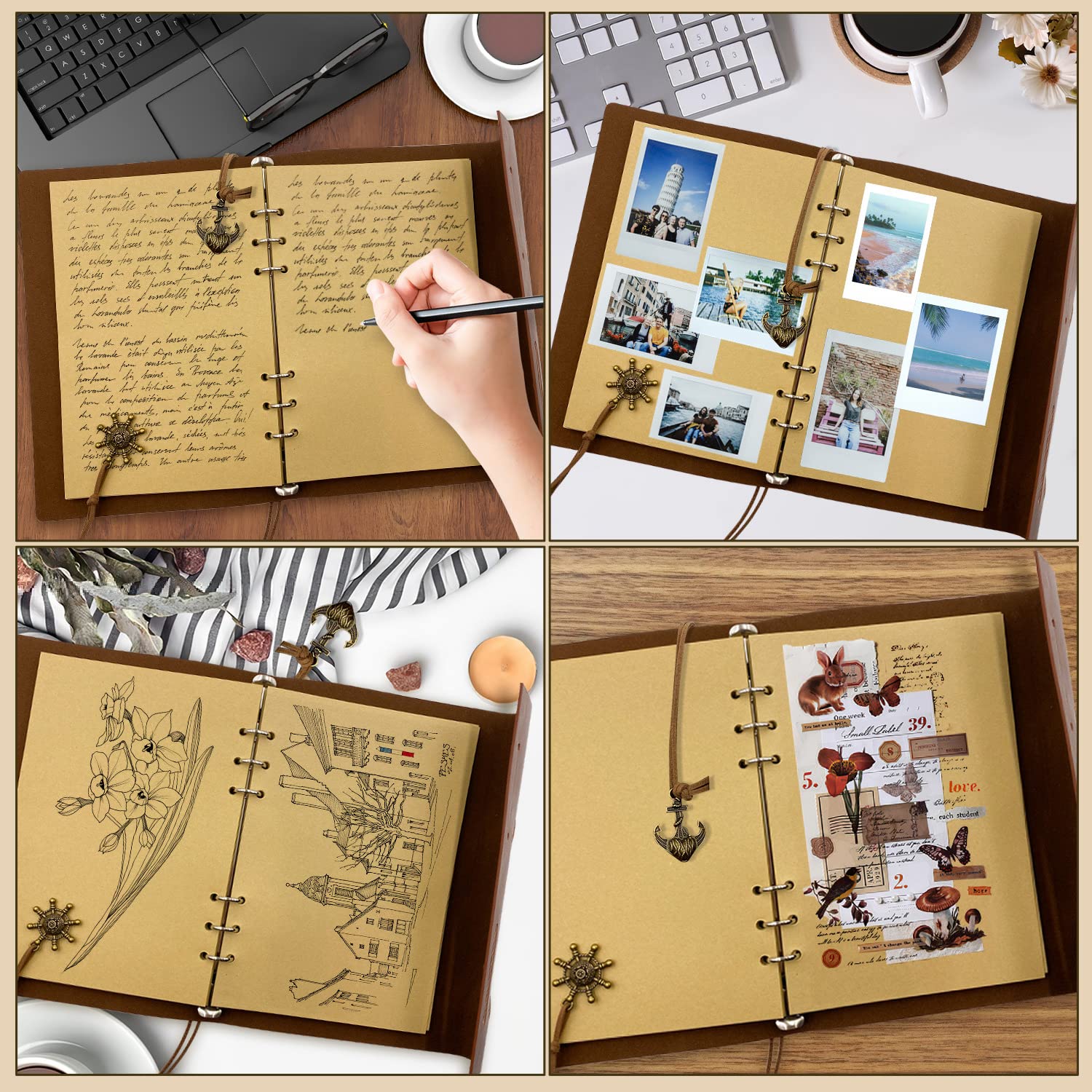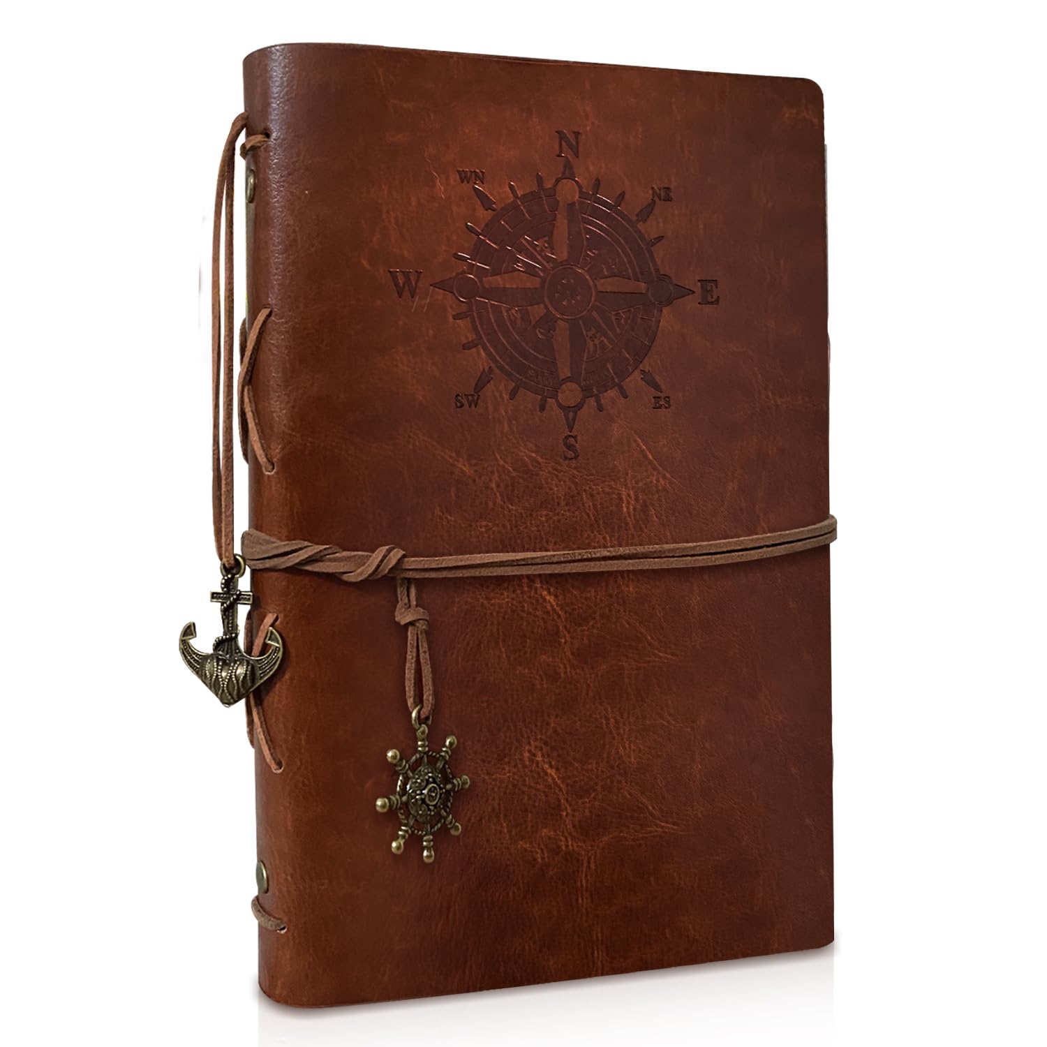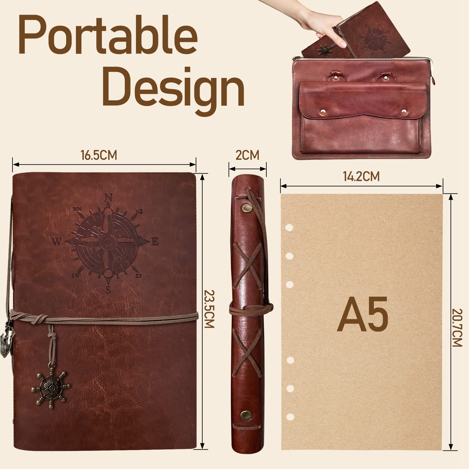 Joy & Inspiration PU Leder Notizbuch A5 mit nachfüllbarem Kraftpapier Vintage Nachfüllbar Gebunden Schönes Reisetagebuch Tagebuch Ringbuch Skizzenbuch Vintage Notebook (A5 Braun)