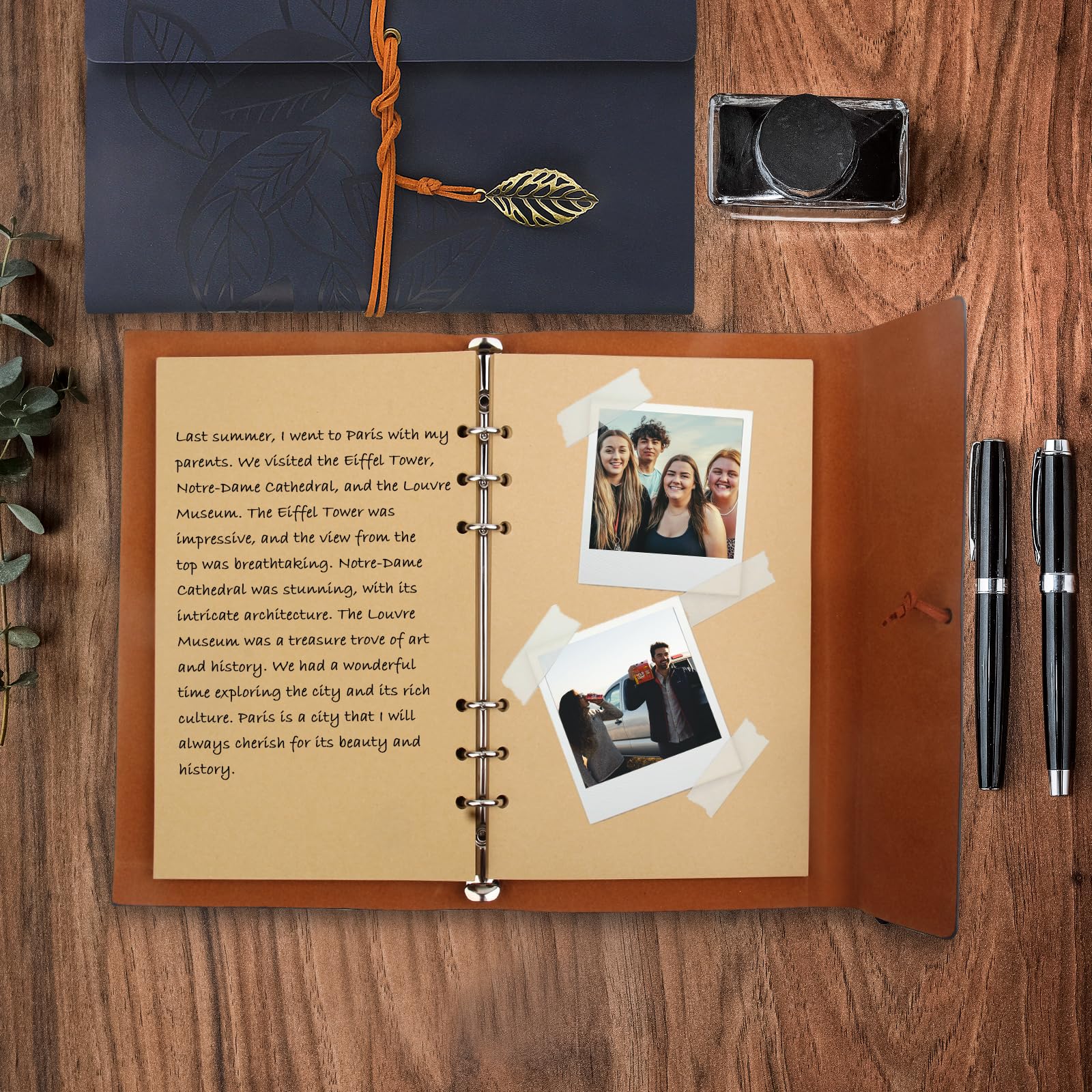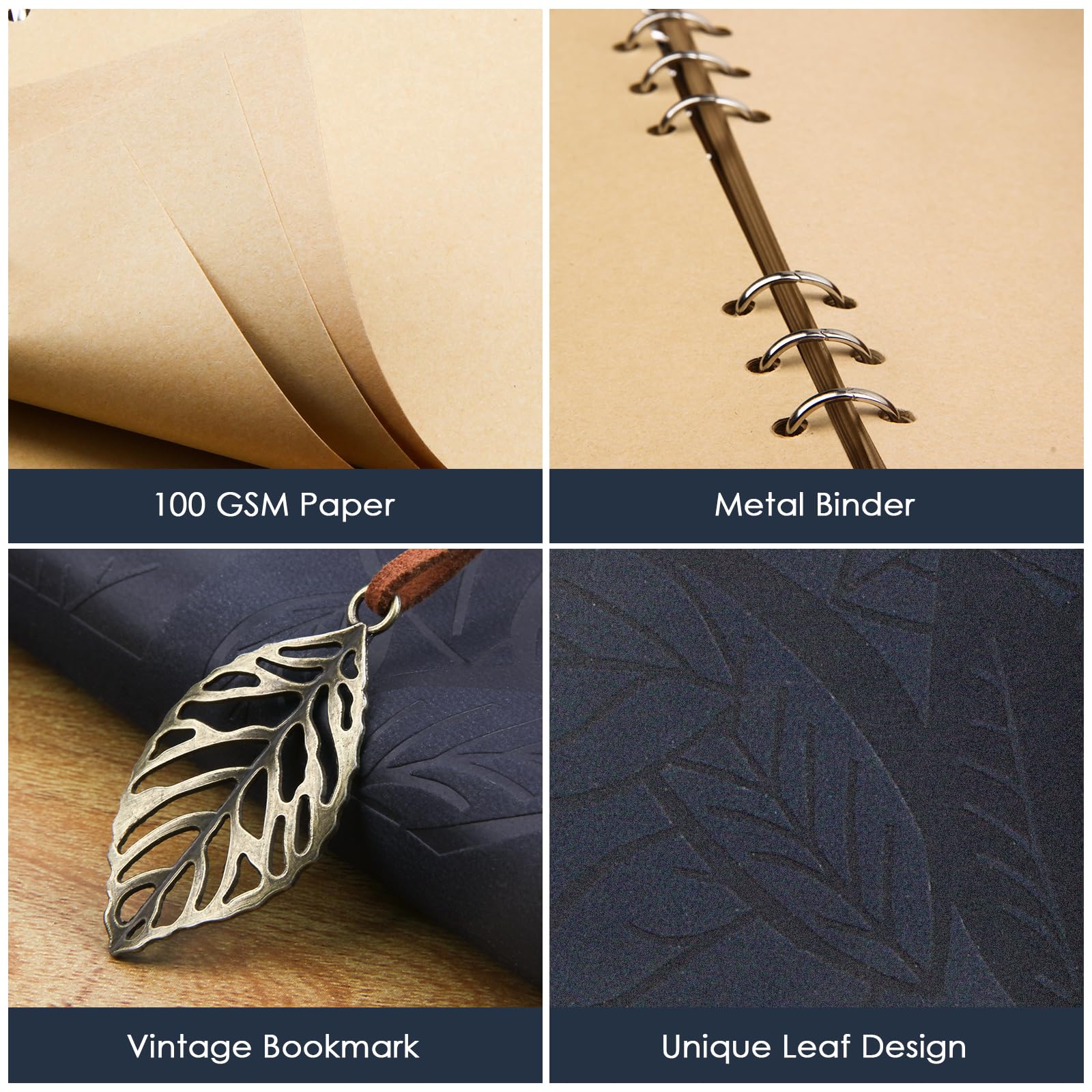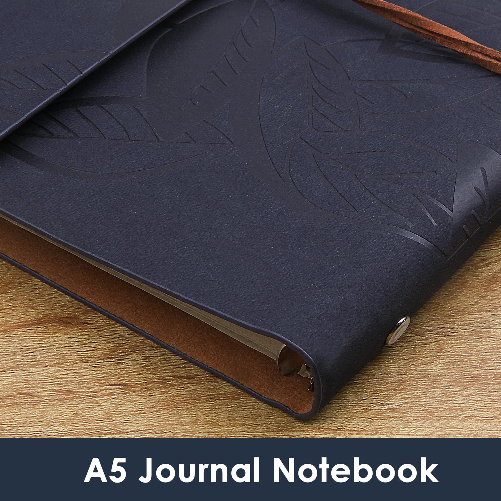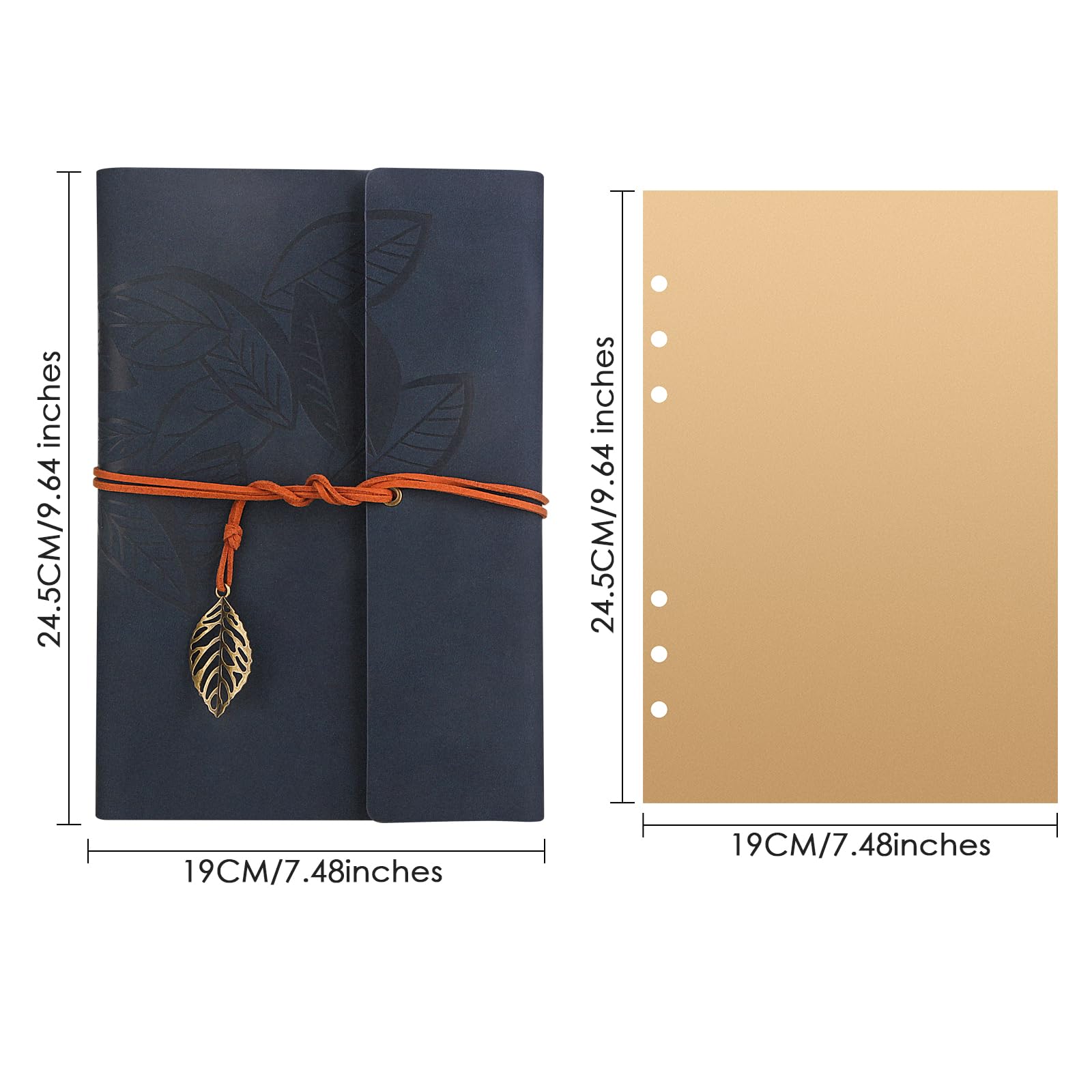 Joy & Inspiration PU Leder Notizbuch Vintage Nachfüllbar Gebunden Schönes Reisetagebuch Tagebuch Ringbuch Skizzenbuch Vintage Notizbuch (A5 Dunkelblau)