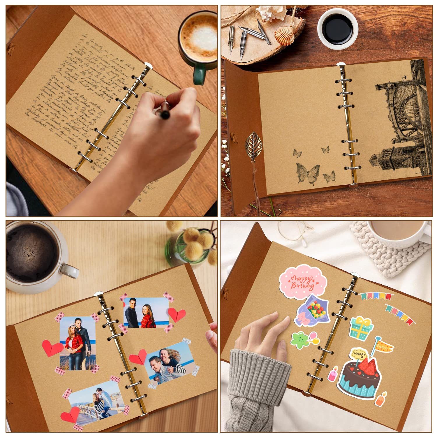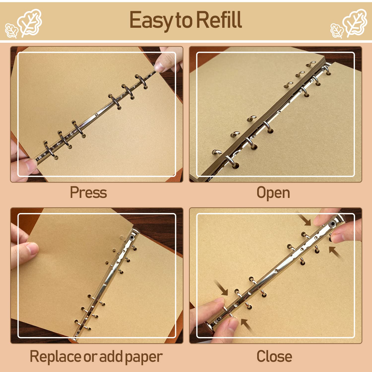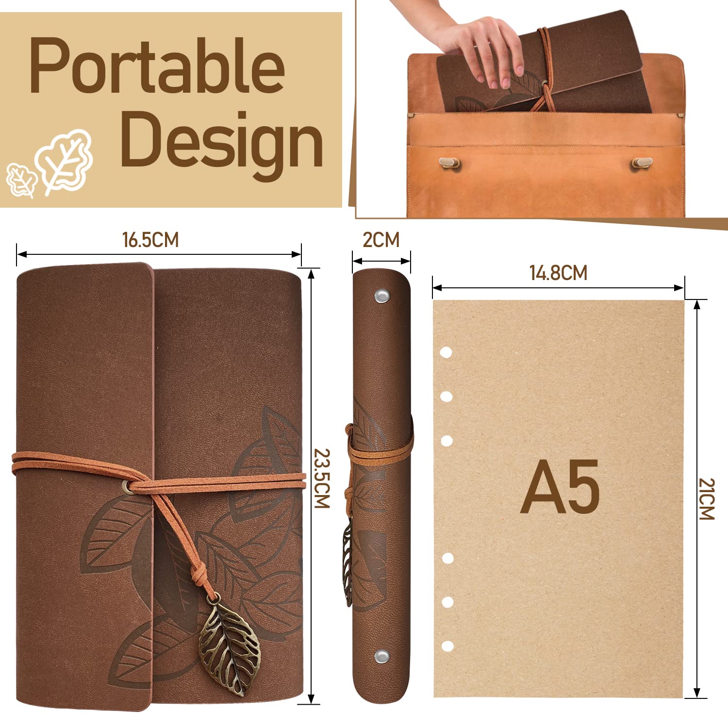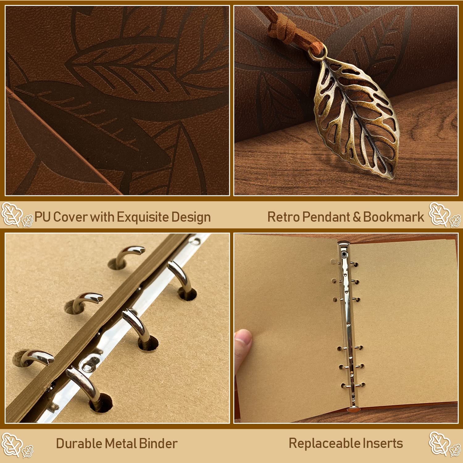 Ideale Geschenke: jeder verdient ein zartes Tagebuch-Notizbuch, um seine interessanten Erfahrungen oder neuen Ideen festzuhalten, und diese idealen Journale werden Ihnen helfen, sie zu behalten; ein ideales Geschenk für Geburtstag, Weihnachten und andere denkwürdige FeiertageSpezifikation:Umschlagmaterial: PU LederPapiermaterial: Blanko CraftBlätter: 80Seiten: 160Produktmerkmale:Hochwertiges Kunstleder mit schönem, eingraviertem Blattdesign.Dickes Bastelpapier: Glatt, kein Ausbluten für Füllfederhalter, Gelschreiber, Kugelschreiber, Bleistift, Buntstifte und jeden anderen Stift.Lay-flat 180°: öffnet sich flach für einfache NotizenDoppelter 6-Ring-Binder: Sie können die Seiten leicht herausnehmen und auffüllenAngemessene Grösse, leicht zu tragen und überall und jederzeit zu notieren.Nicht nur als Notizbuch Journal, sondern auch als:ReisetagebuchBullet JournalFotoalbumSticker-AlbumNotizblockSkizzenbuch