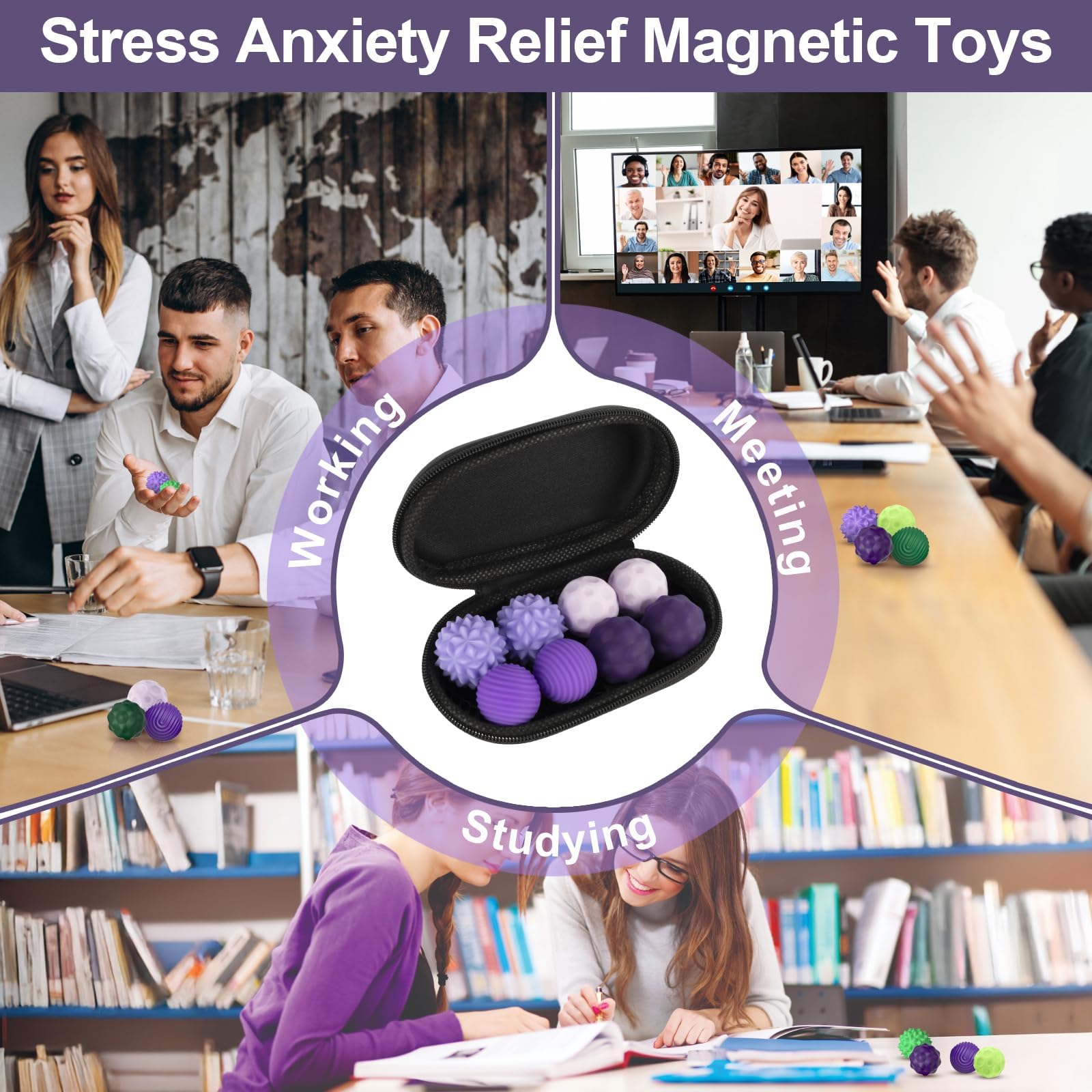 JoyJoyful 8 Stück Magnetkugeln Fidget Toys Erwachsene, Magnetische Kugeln Sensorik Spielzeug, Stress Bälle Mit Silikonhülle, Autismus Antistress Spielzeug Sensory Toys Sensorischer Ball (Violett)
