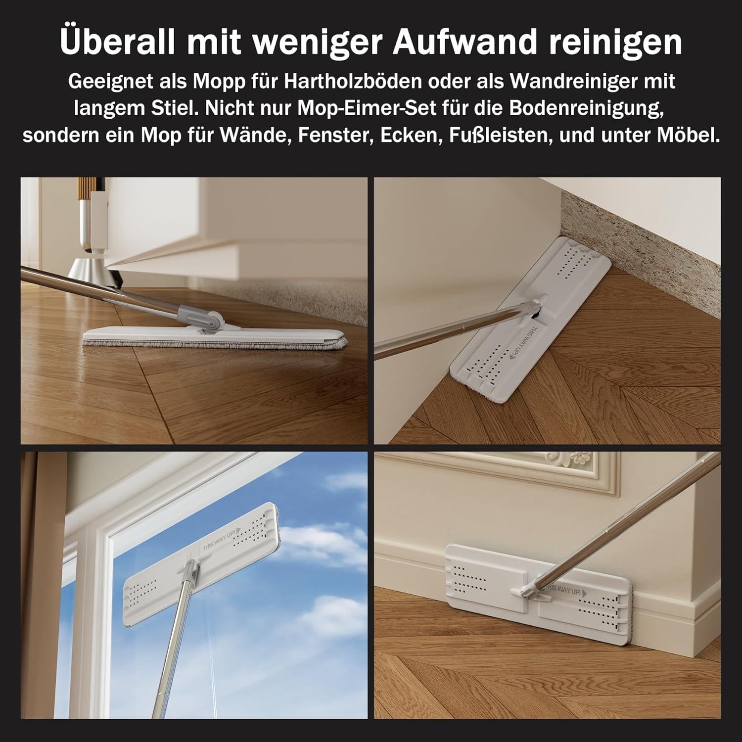 JOYMOOP Mop und Eimer mit Wringer Set, Flachboden Mop und Eimer, Mop für die Bodenreinigung mit 5 Mikrofaser-Pads, nass und trocken verwenden, Haushaltsreinigungsgeräte, für Hartholz, Laminat, Fliesen.