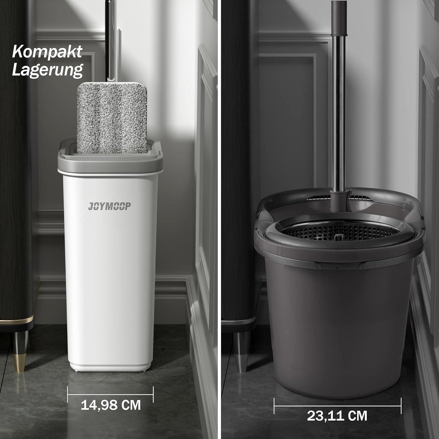 Mindestanzahl für die Bestellung von "JOYMOOP Wischmopp und Eimer mit Auswringer-Set, freihändiger Flacher Bodenwischer und Eimer, mit 3 waschbaren Mikrofaser-Pads, Nass- und Trockengebrauch, Bodenreinigungssystem" ist 1.