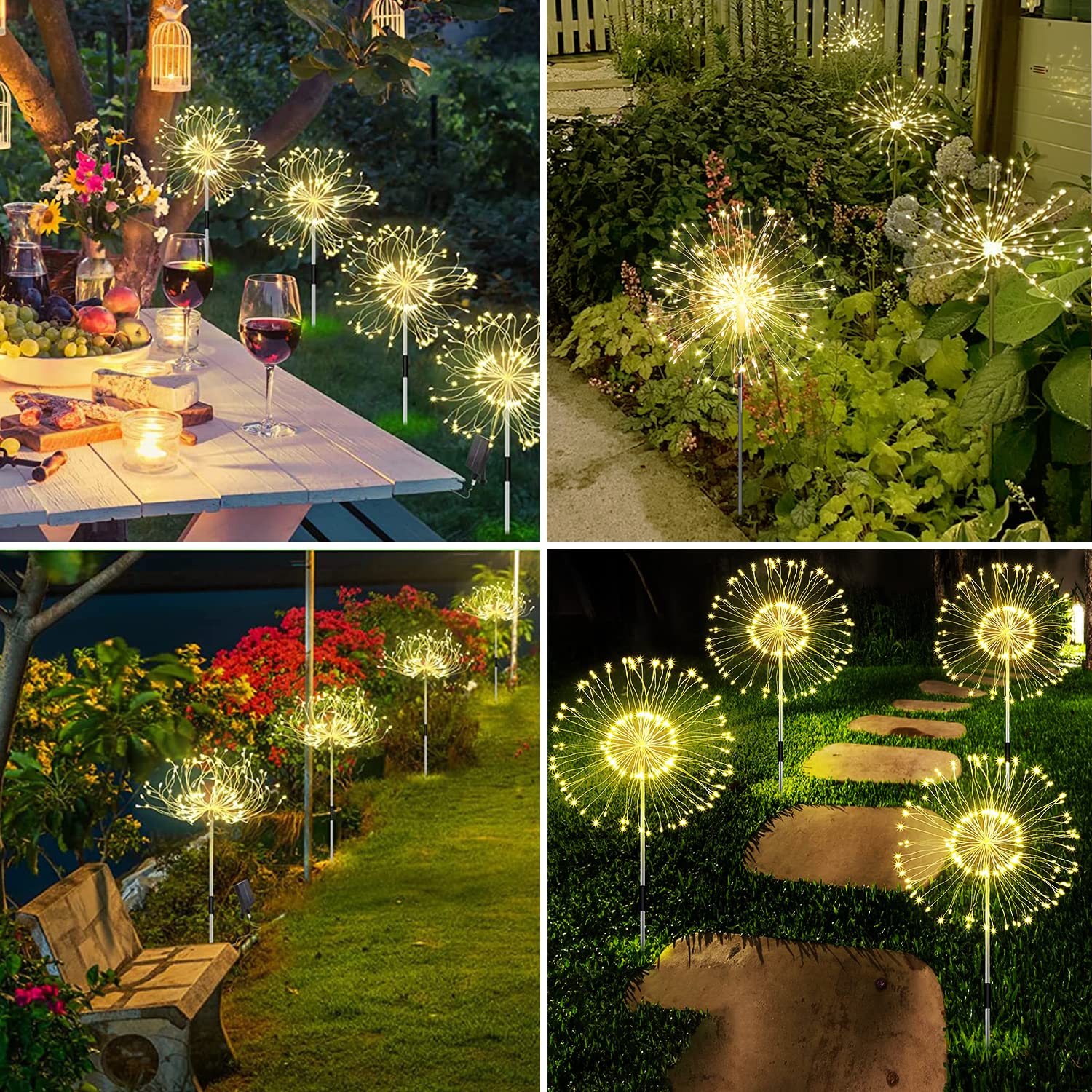 4 X 120 LED Warmweiss Solarfeuerwerk Lichter für draussen
