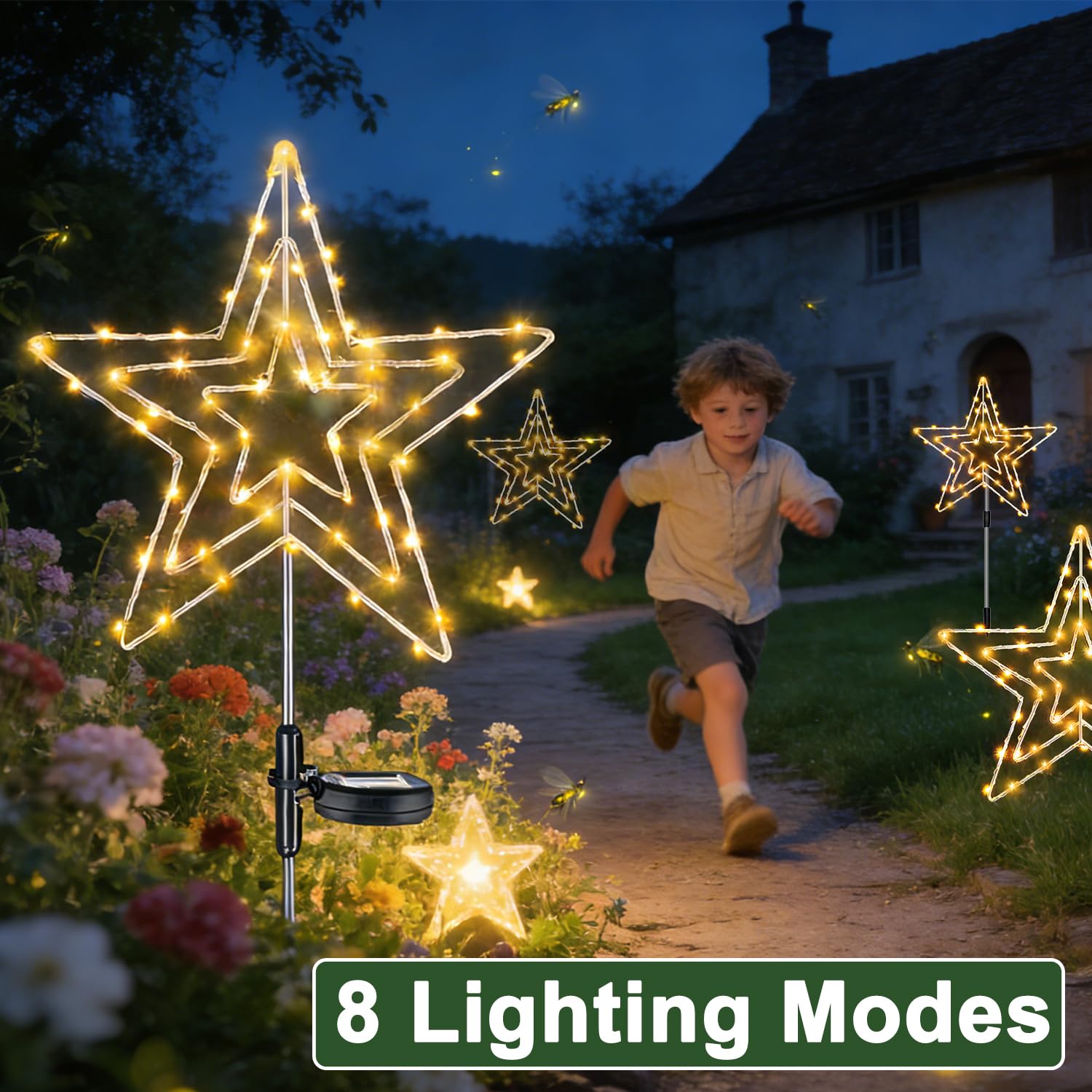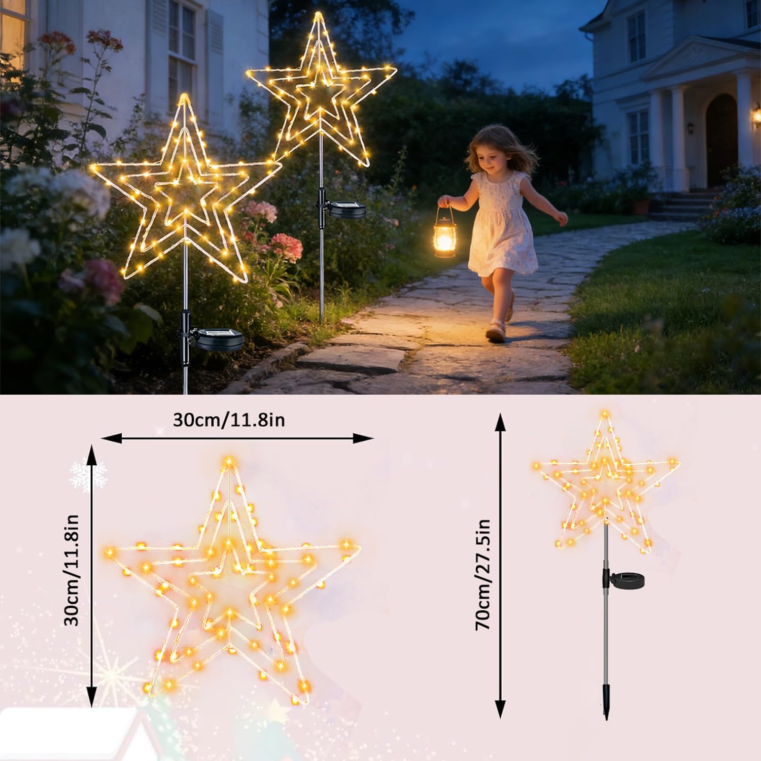 Joysing Gartendeko Solar Gartenleuchte Aussen Stern 2 Stück 75 LED Gartenstecker Beleuchtet, 8 Modi Gartenstecker Stern wasserdichte Weihnachtsstern for Garten Weihnachten Deko