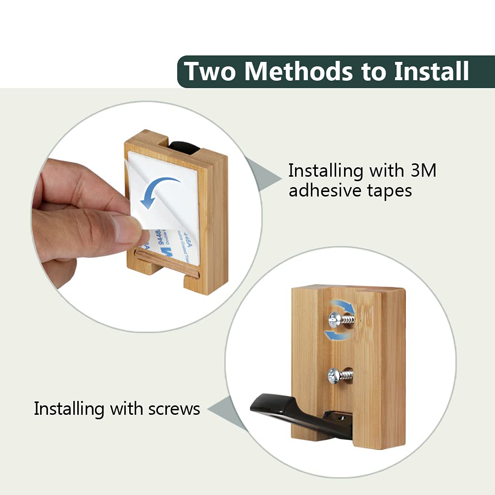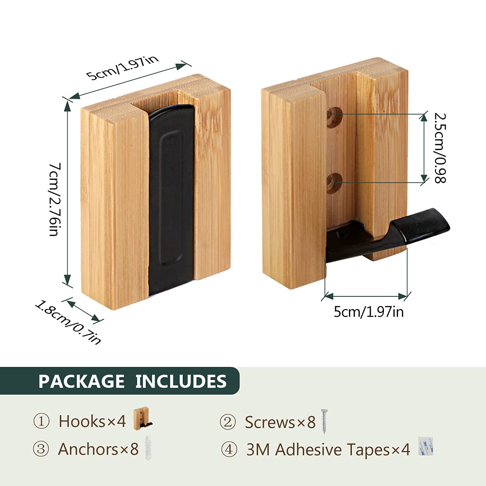 JSVER Kleiderhaken 4 stück Bambus Haken Garderobenhaken Wand Moderne Garderobenleiste Holz Faltbarer für Jacken, Mäntel, Schals, Handtaschen und Mehr, Holz