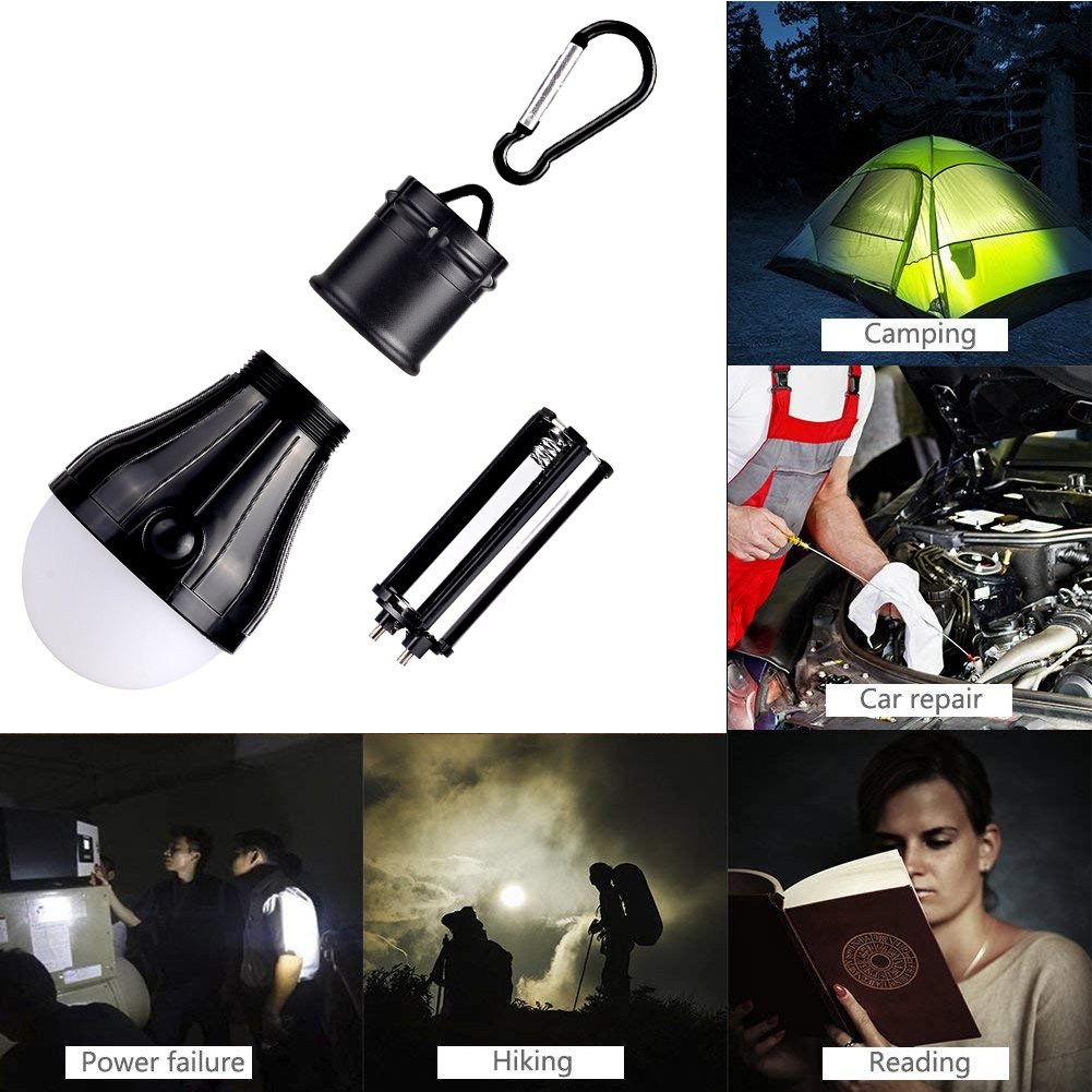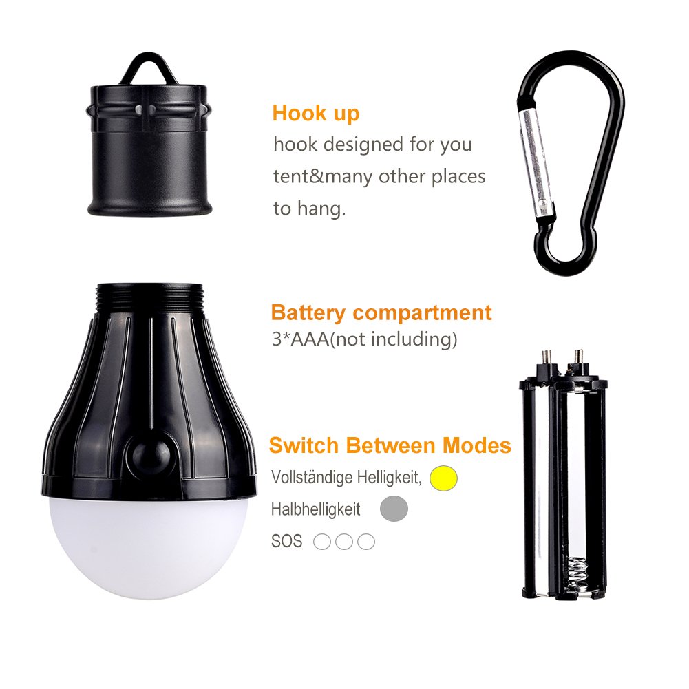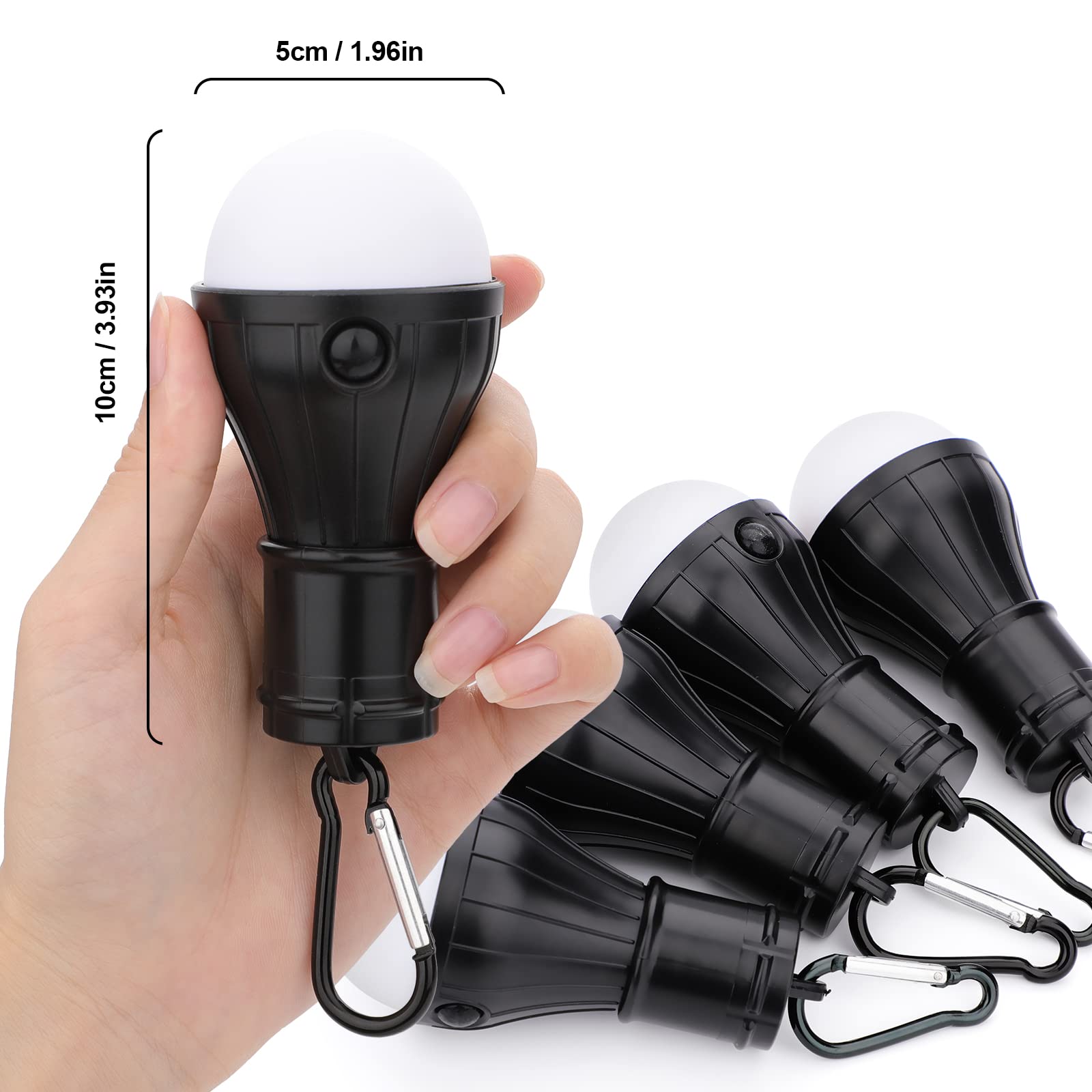 JTENG Campinglampe mit Karabiner Camping Lantern 4 Stücke LED Zeltlampe Glühbirne Set Lampen wasserdicht Rucksack