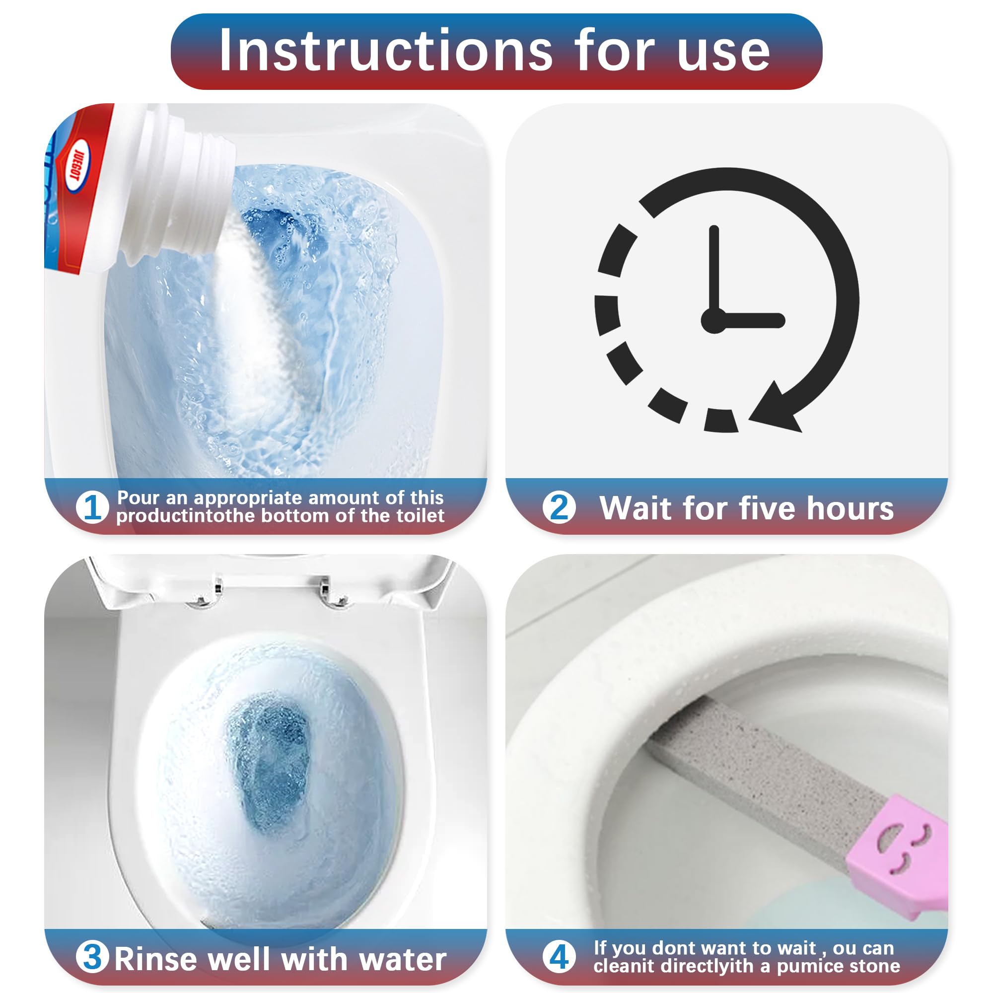 • Anweisungen: Produkt 2 schäumt nur, wenn es in einer sehr unsauberen Toilette verwendet wird; wenn kein Schaum entsteht, bedeutet dies, dass Ihre Toilette nicht sehr schmutzig ist. Warten Sie 5-8 Stunden, nachdem Sie das Produkt in die Toilette geschüttet haben, und spülen Sie es dann mit Wasser aus, dann ist es sehr sauber.