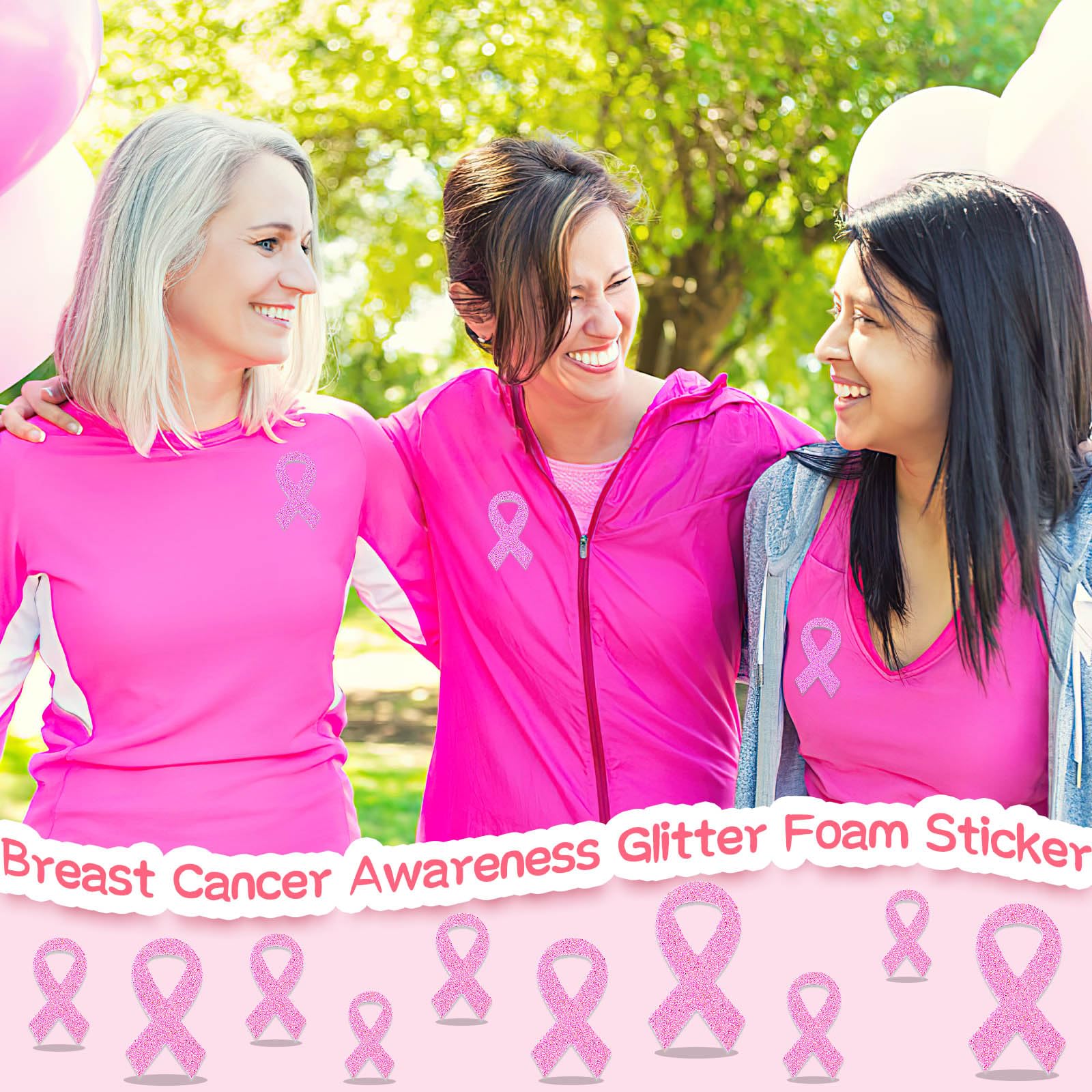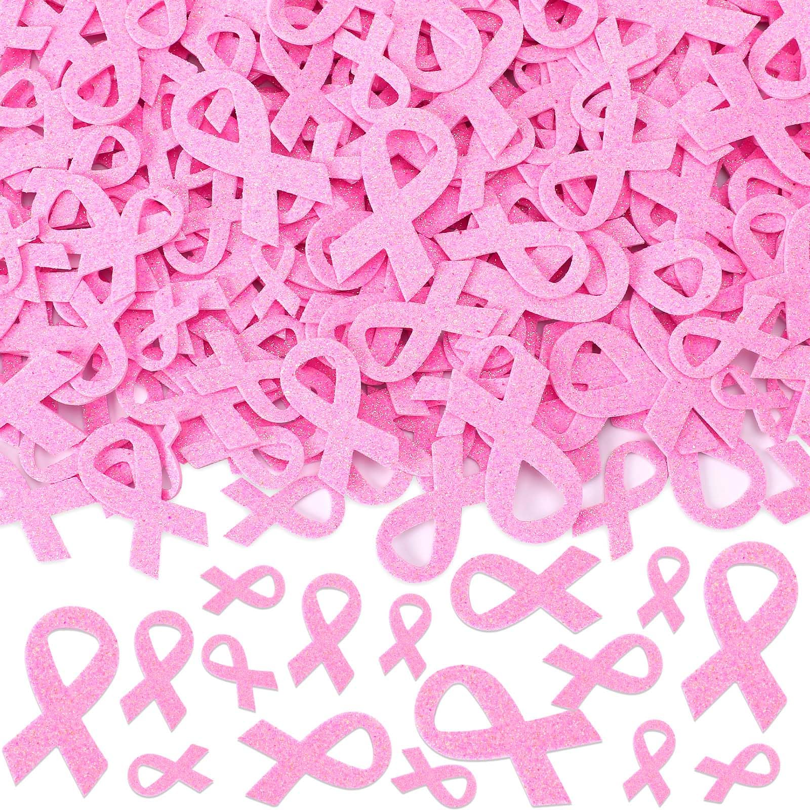 JULBEAR Schaumstoff-Aufkleber für Brustkrebs-Bewusstsein, 300 Stück, rosa Schleife, Glitzer, selbstklebende Schaumstoff-Aufkleber für Frauen, Brustkrebs-Bewusstseinszubehör, Partyzubehör