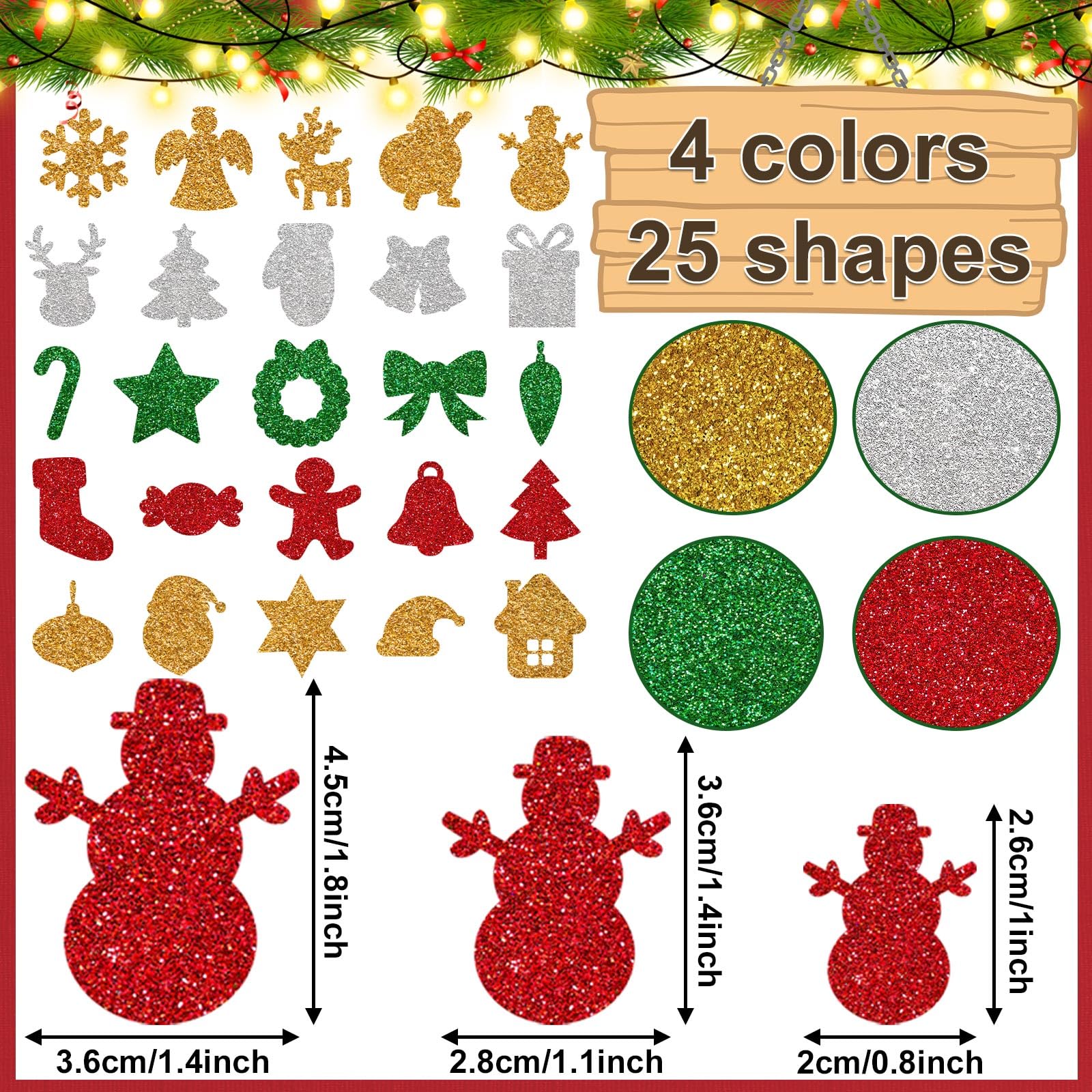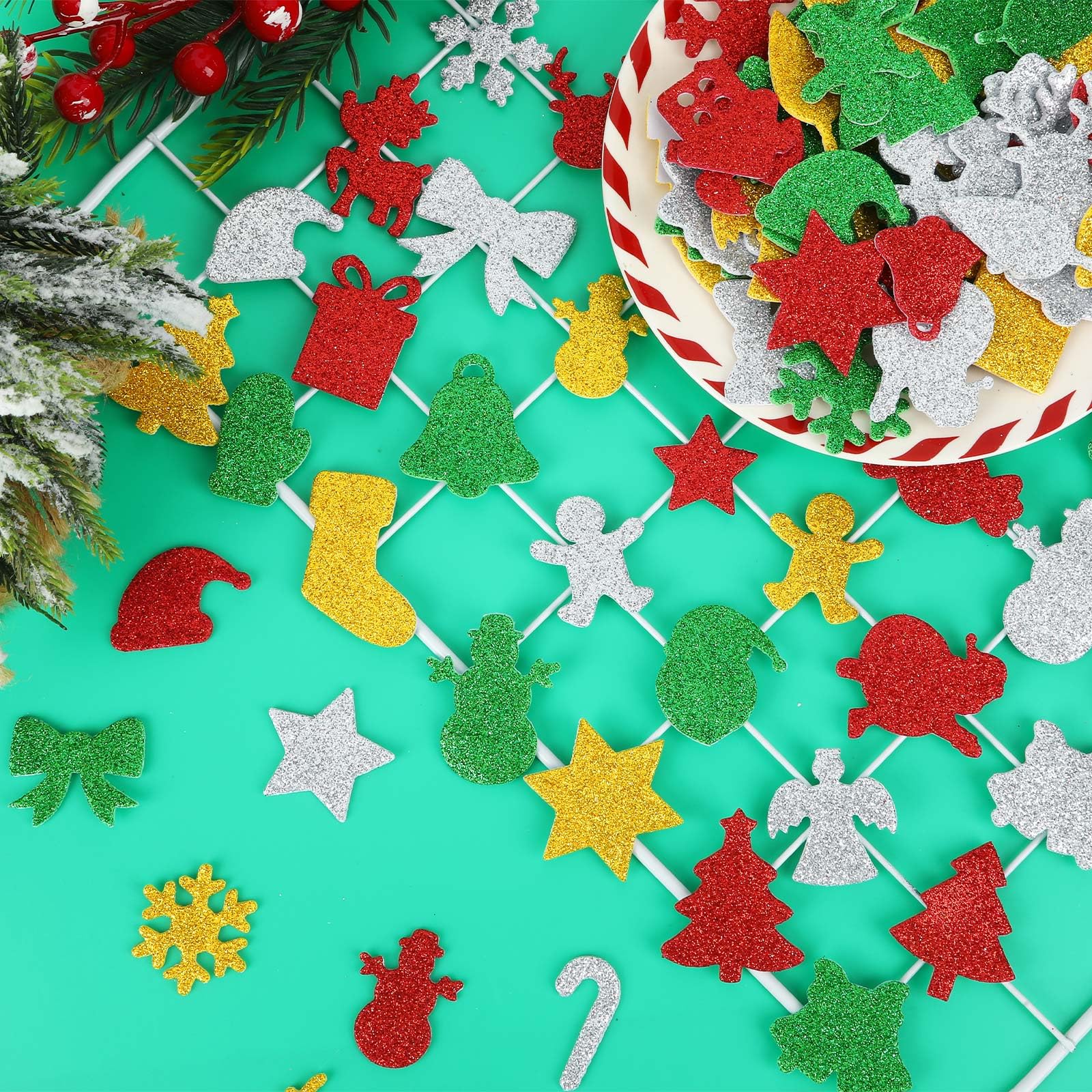 JULBEAR Schaumstoff Weihnachtssticker, 300 Stück Glitzernde Weihnachtssticker Weihnachten Aufkleber Selbstklebende Moosgummi Weihnachtsaufkleber für Weihnachtsfeiertage Basteln Party