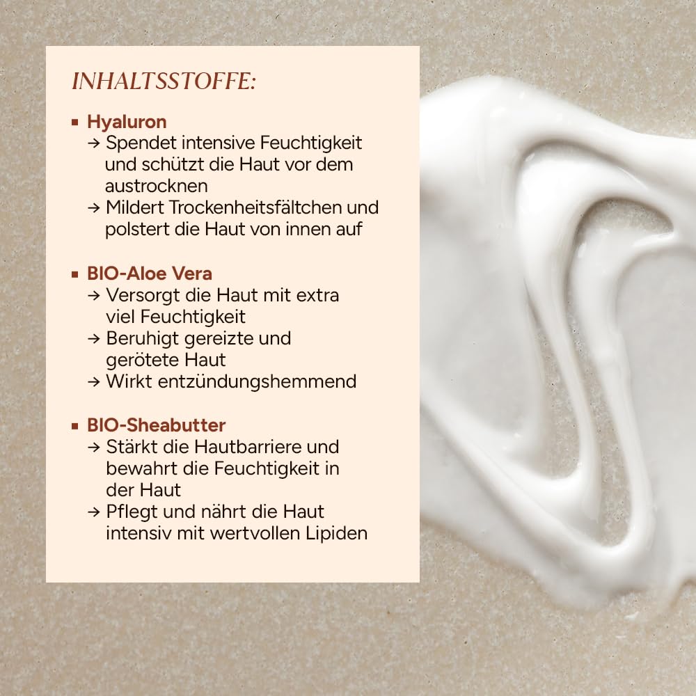 Maximale Feuchtigkeit und nährende Pflege: Die Kraft von hochdosierter Hyaluronsäure, Bio-Aloe Vera und Bio-Shea Butter