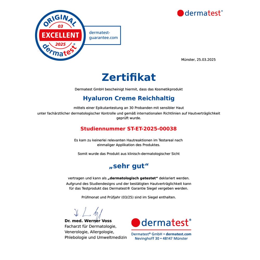 JUNGLÜCK Hyaluron Creme Reichhaltig (50ml) – Intensive Anti-Aging Pflege für trockene Haut