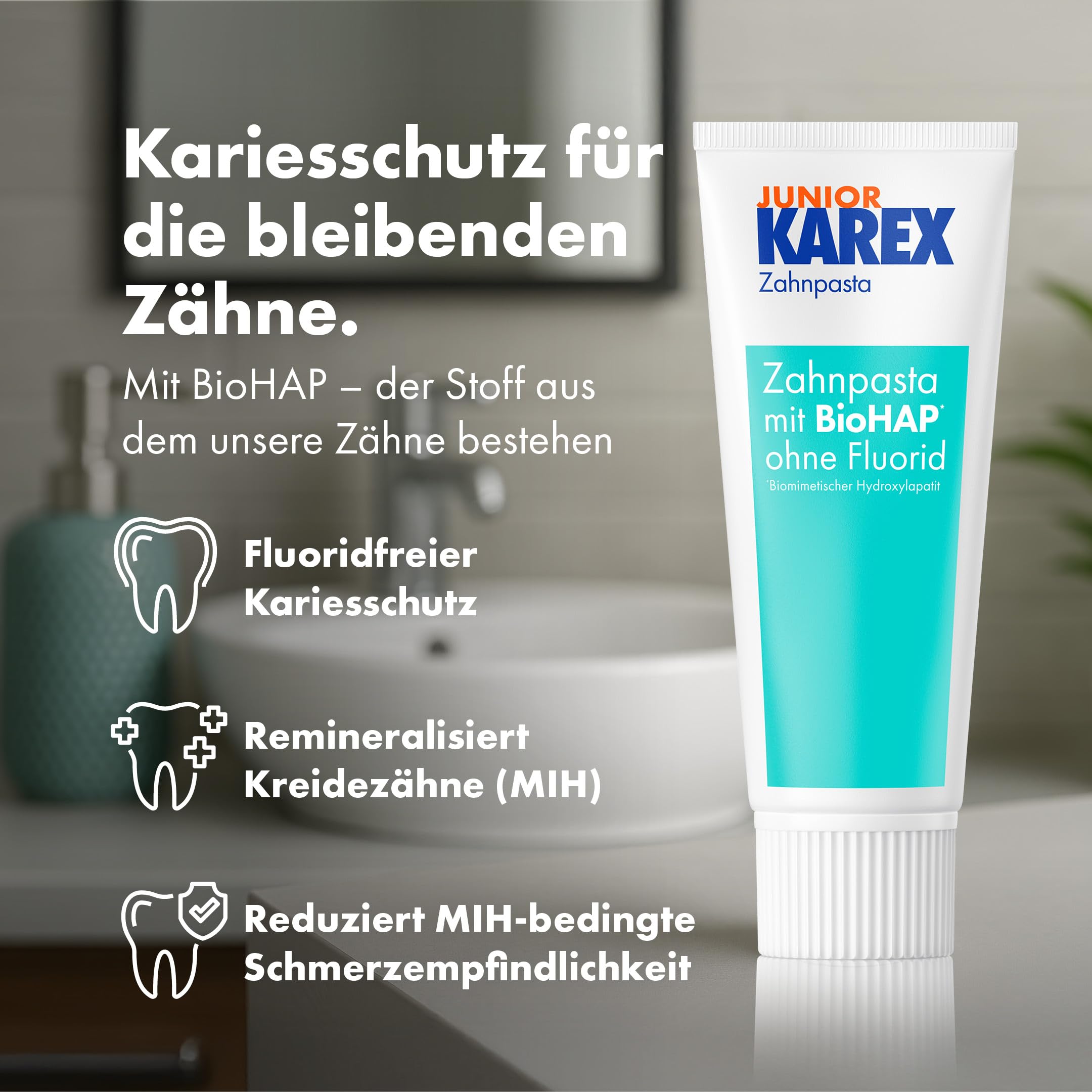 Schützen Sie die Zukunft des Lächelns Ihrer Kinder mit der innovativen Junior Karex Zahnpasta.