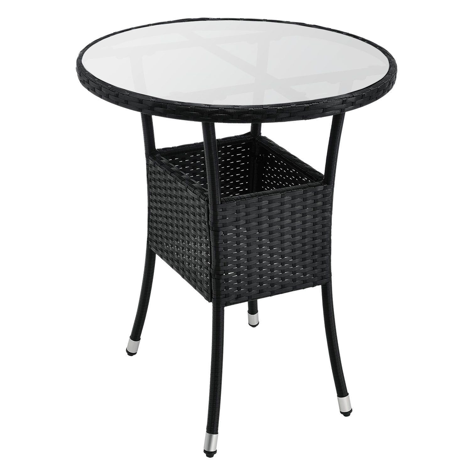 - Material Tisch: Polyrattan, Metall, Glas