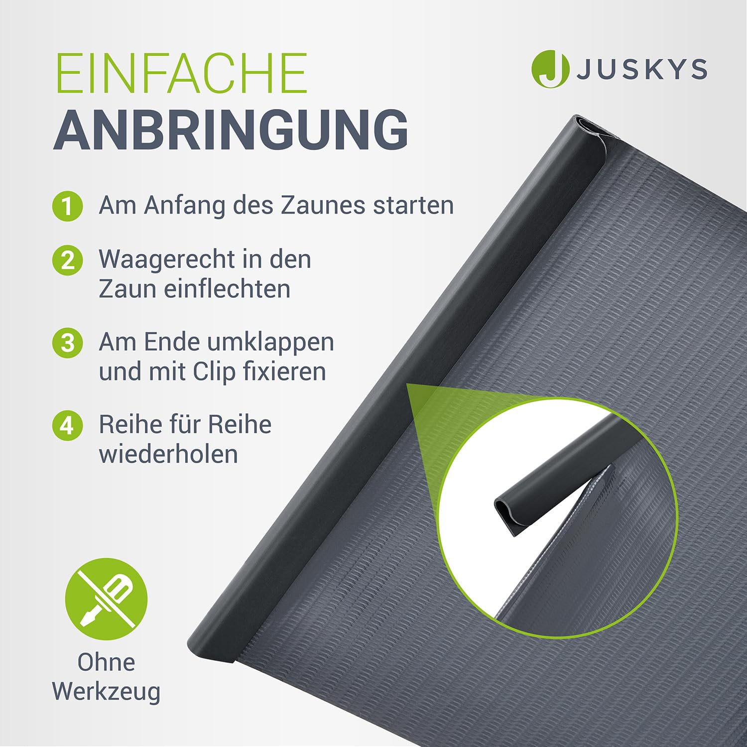 - Einfach anzubringende Zaunblende mit 120 mitgelieferten Clips