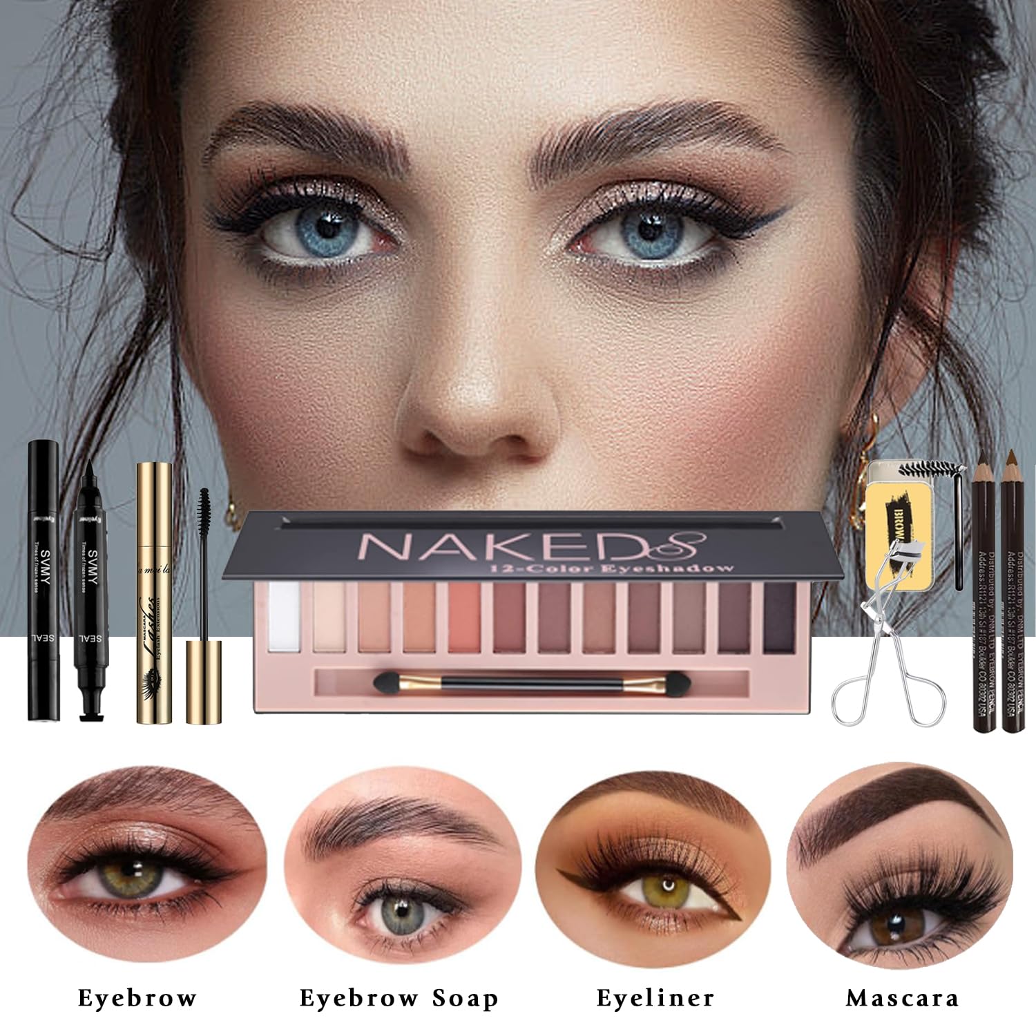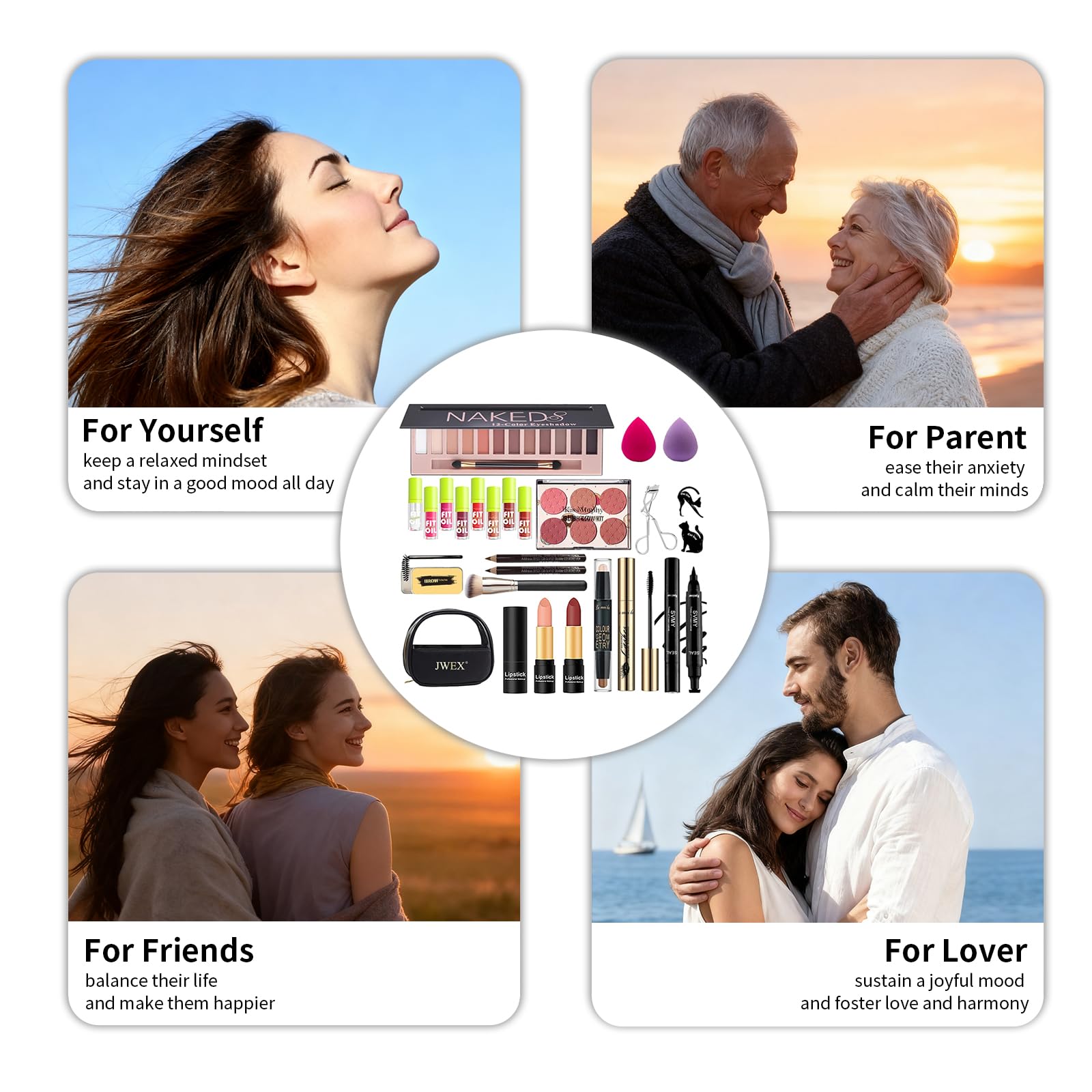 JWEX Make-up Sets, 25 Stück All in One Make Up Set, Schminke Set Frauen, Kosmetik Starter Kit, mit 12 Colours Lidschatten Palette, Augenbrauenstift Wasserfest, Mascara, Eyeliner