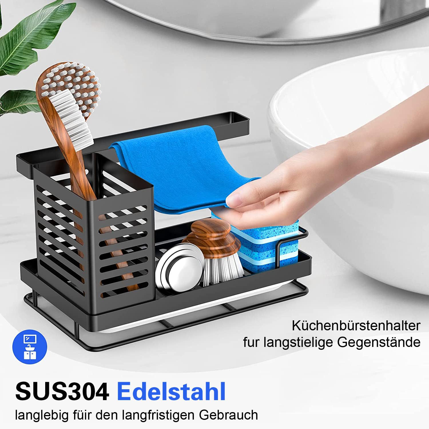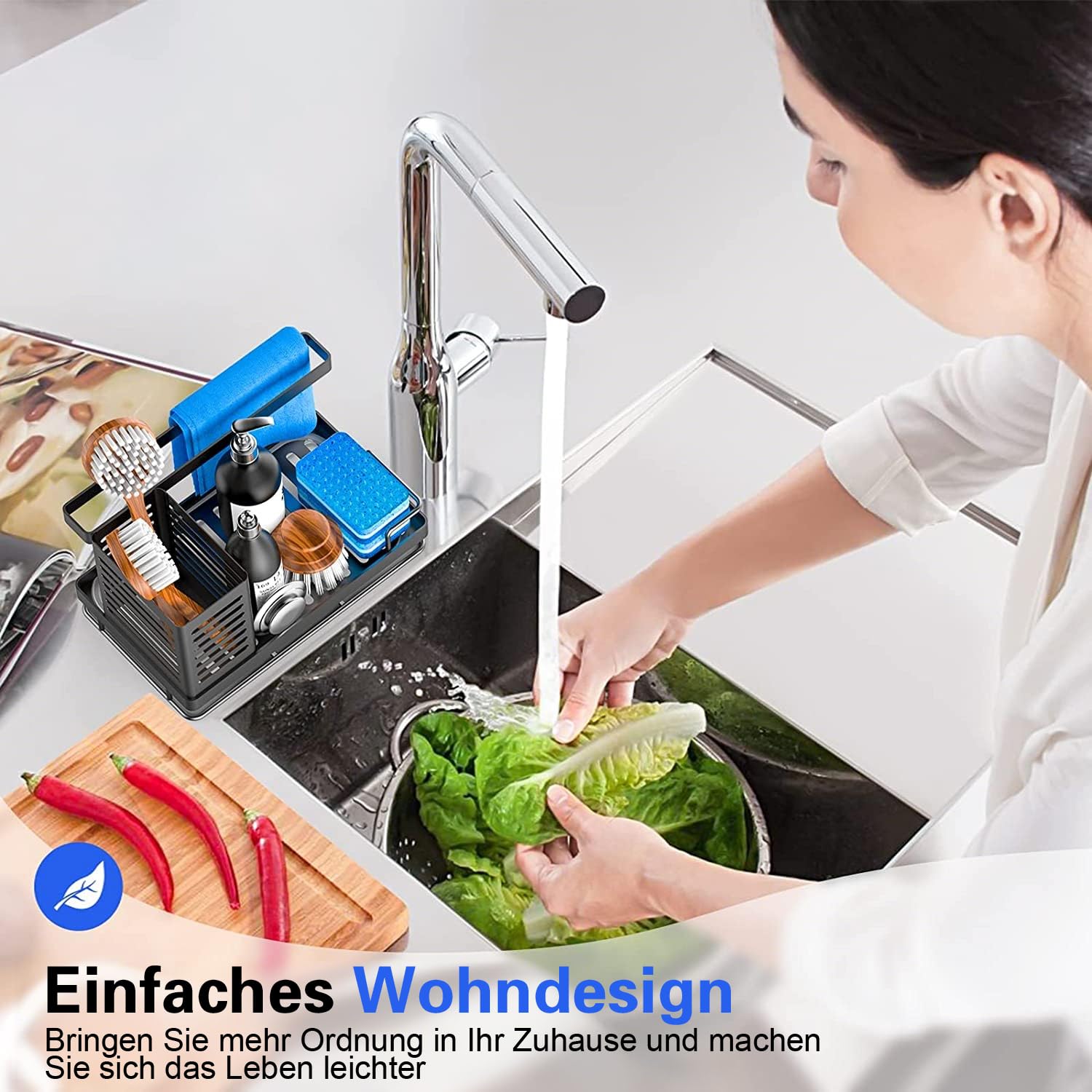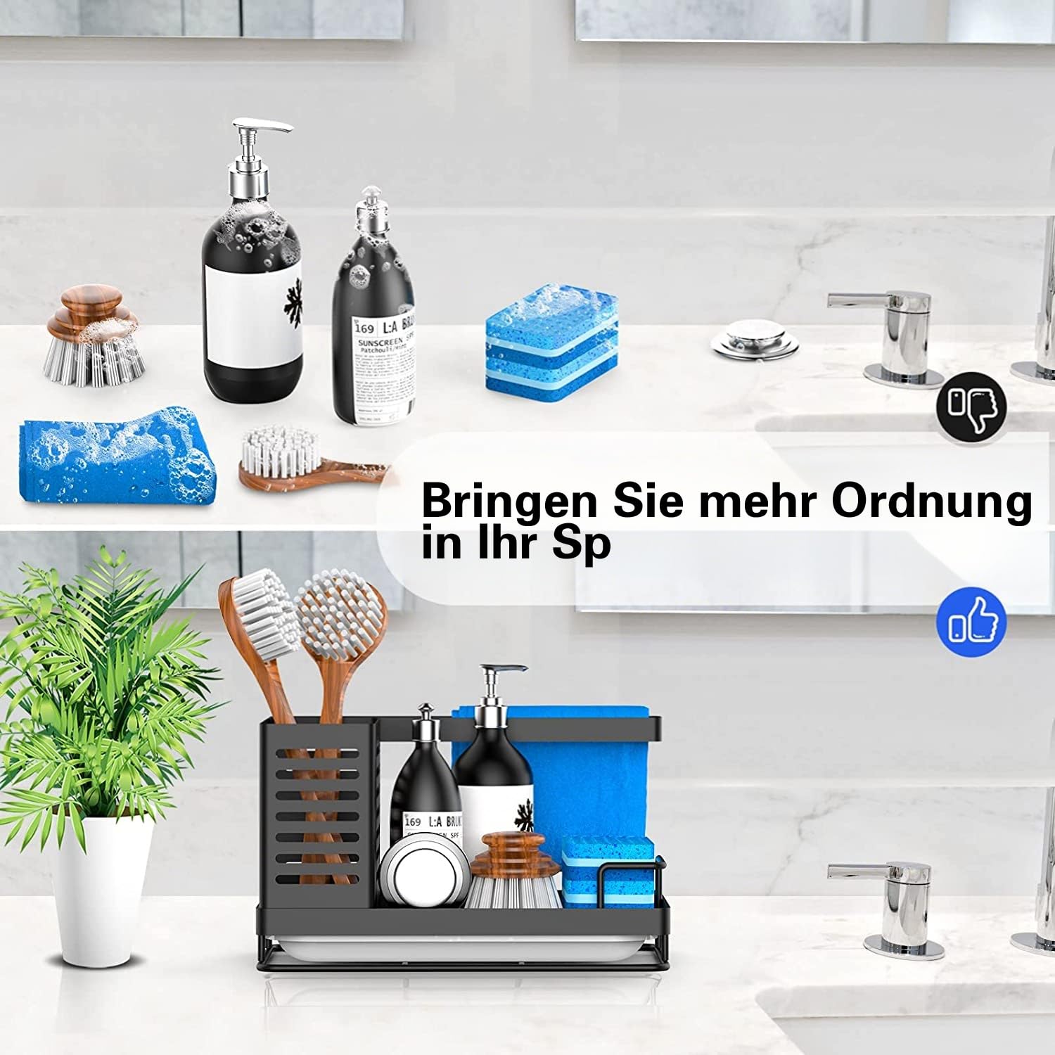 JYSDCXC Spülbecken Organizer mit Abflusspfanne,Küchenspüle Caddy Schwarz,Spülbecken Caddy für Schwämme/Bürsten/Seifen in Küche und Bad,rutschfest,abnehmbar