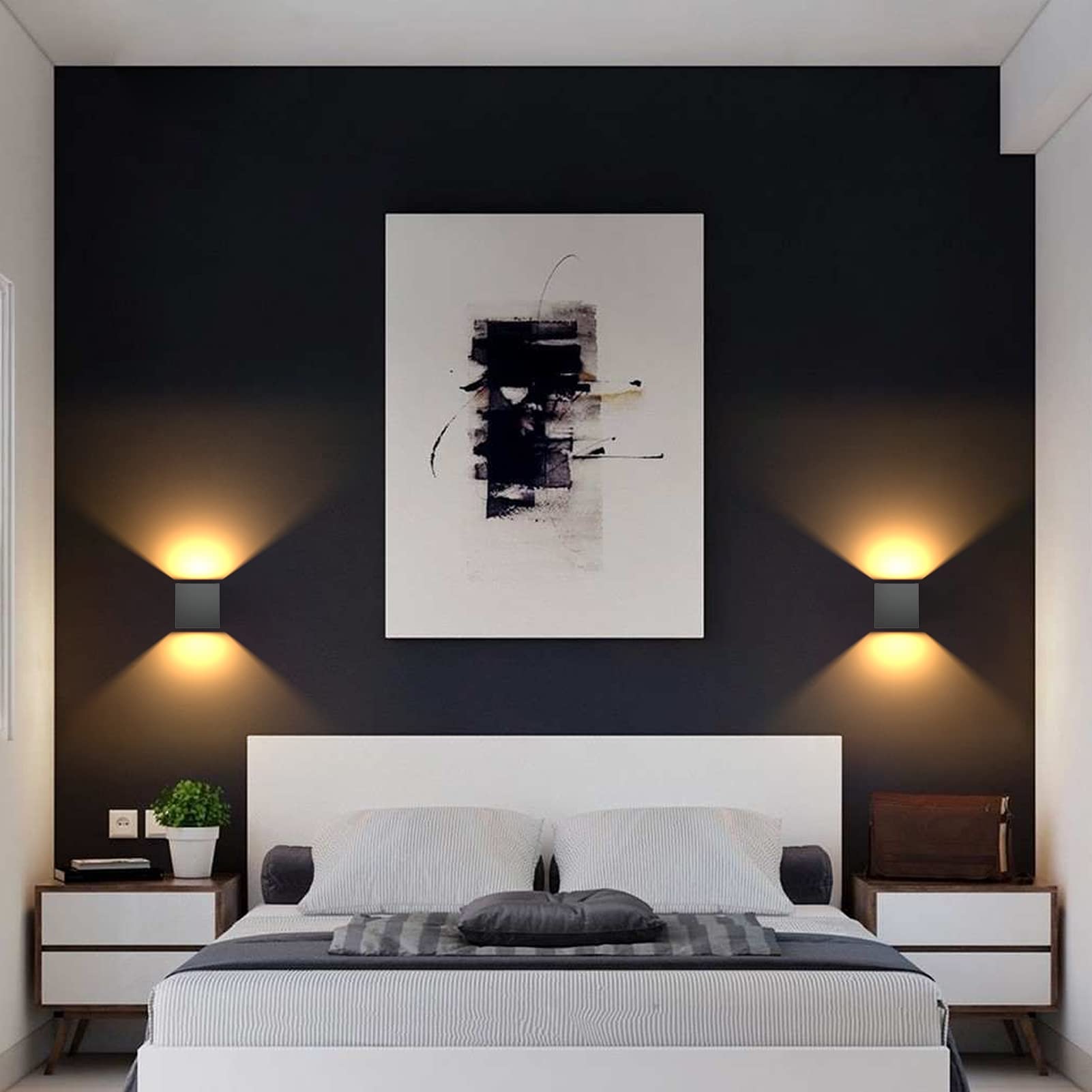 K-Bright 8 Stück LED Wandleuchten Innen/Aussen 12W Wandlampe Auf und ab Einstellbarer Lichtstrahl, 3000K Warmweiss Aussenwandleuchte IP65 für Wohnzimmer Schlafzimmer Balkon, Dunkelgrau