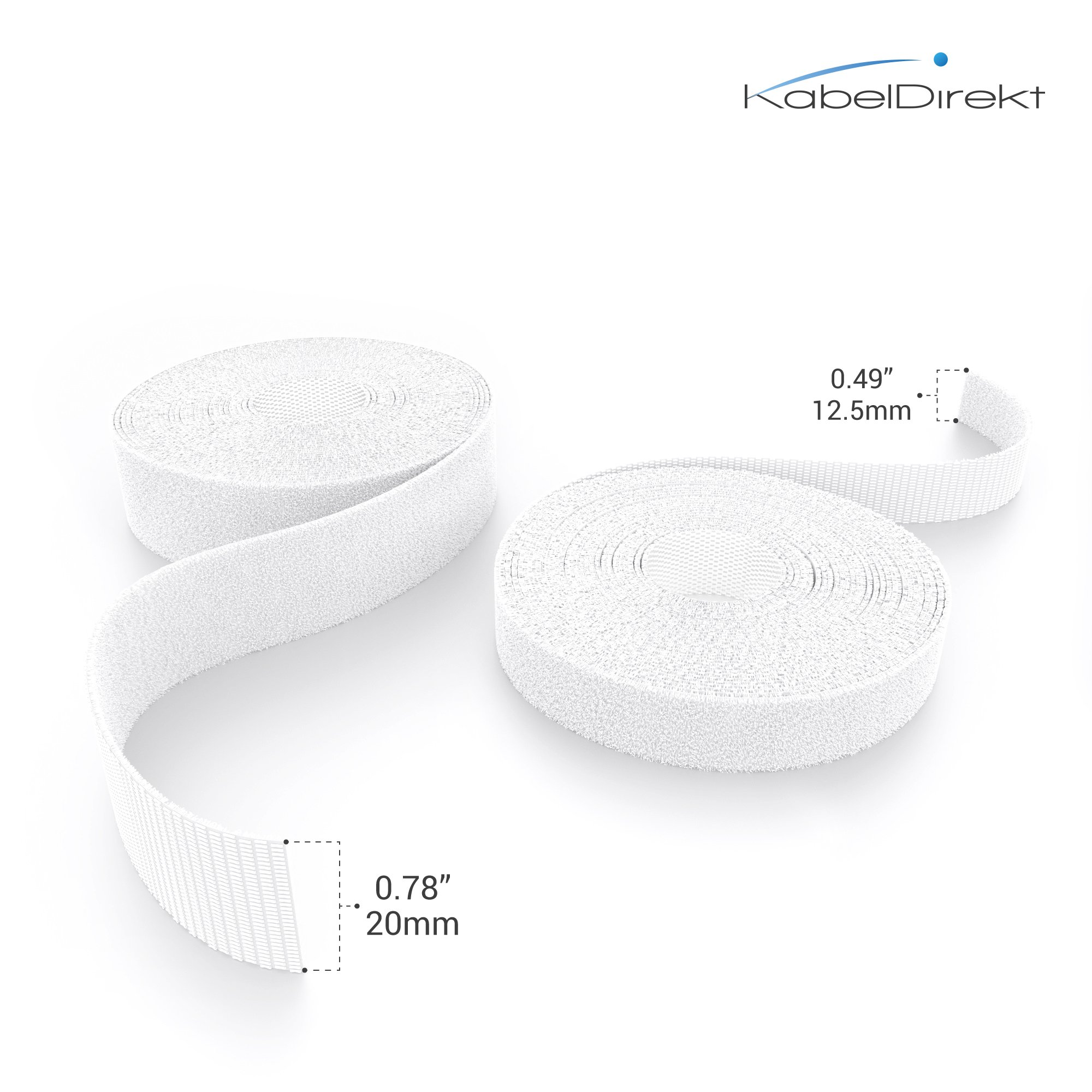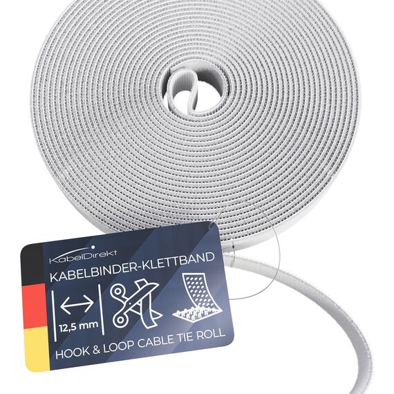 KabelDirekt – Kabelbinder Klettband – 10m Rolle, 12,5mm breit – zuschneidbare Klett-Rolle/Kabelmanagement mit Klettverschluss (wasserfest, umweltfreundlich, wiederverwendbar – weiss)