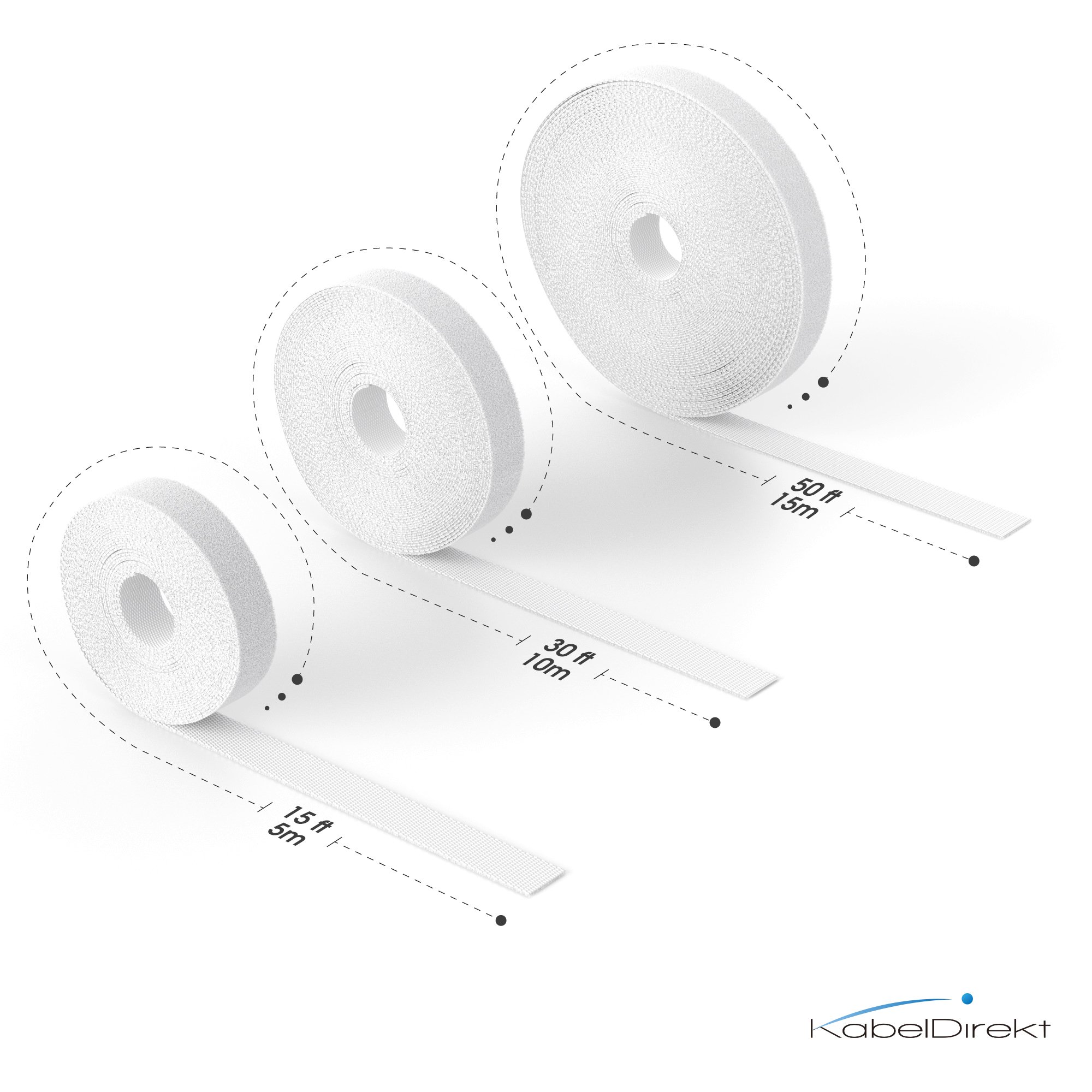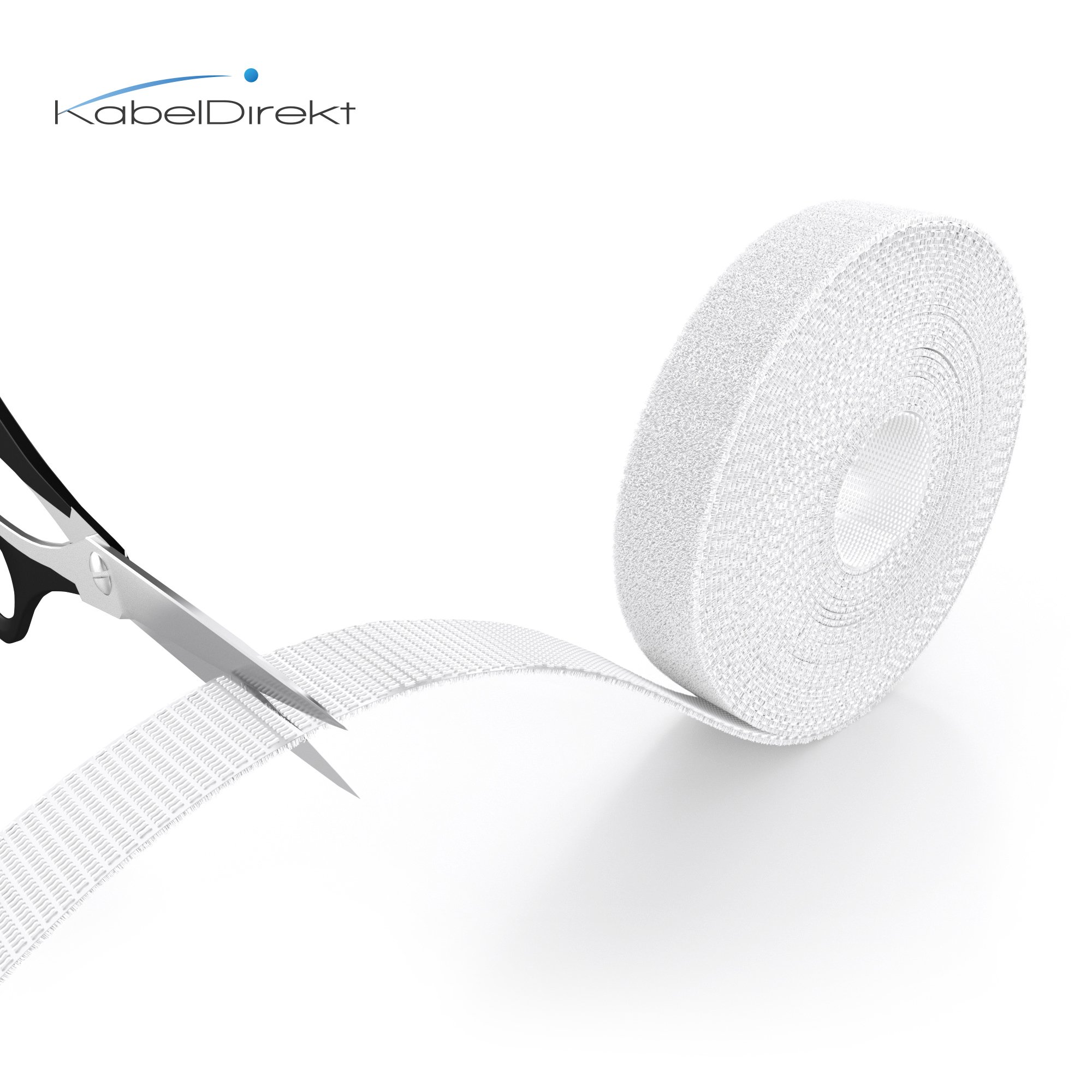 KabelDirekt - Klett Kabelbinder wiederverschliessbar - 12,5mm x 10m - (Rolle für Kabel, frei zuschneidbar & wiederverwendbar, weiss)