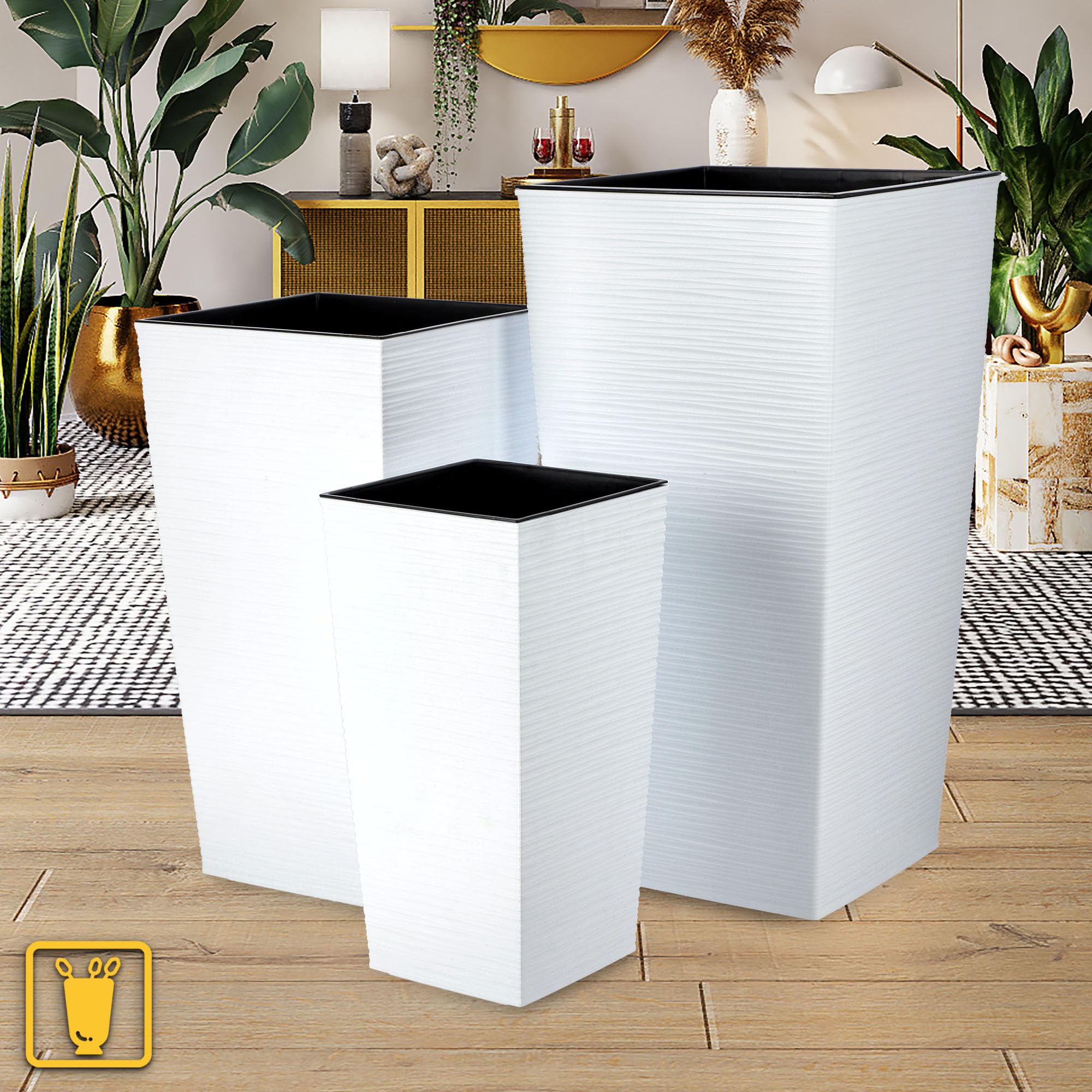KADAX 3er Set Pflanzkübel mit Innentopf 57/68/75 cm Höhe, Weiss – wetterfeste & robuste Blumenkübel aus Kunststoff, Blumentöpfe für Innen- & Aussenbereich