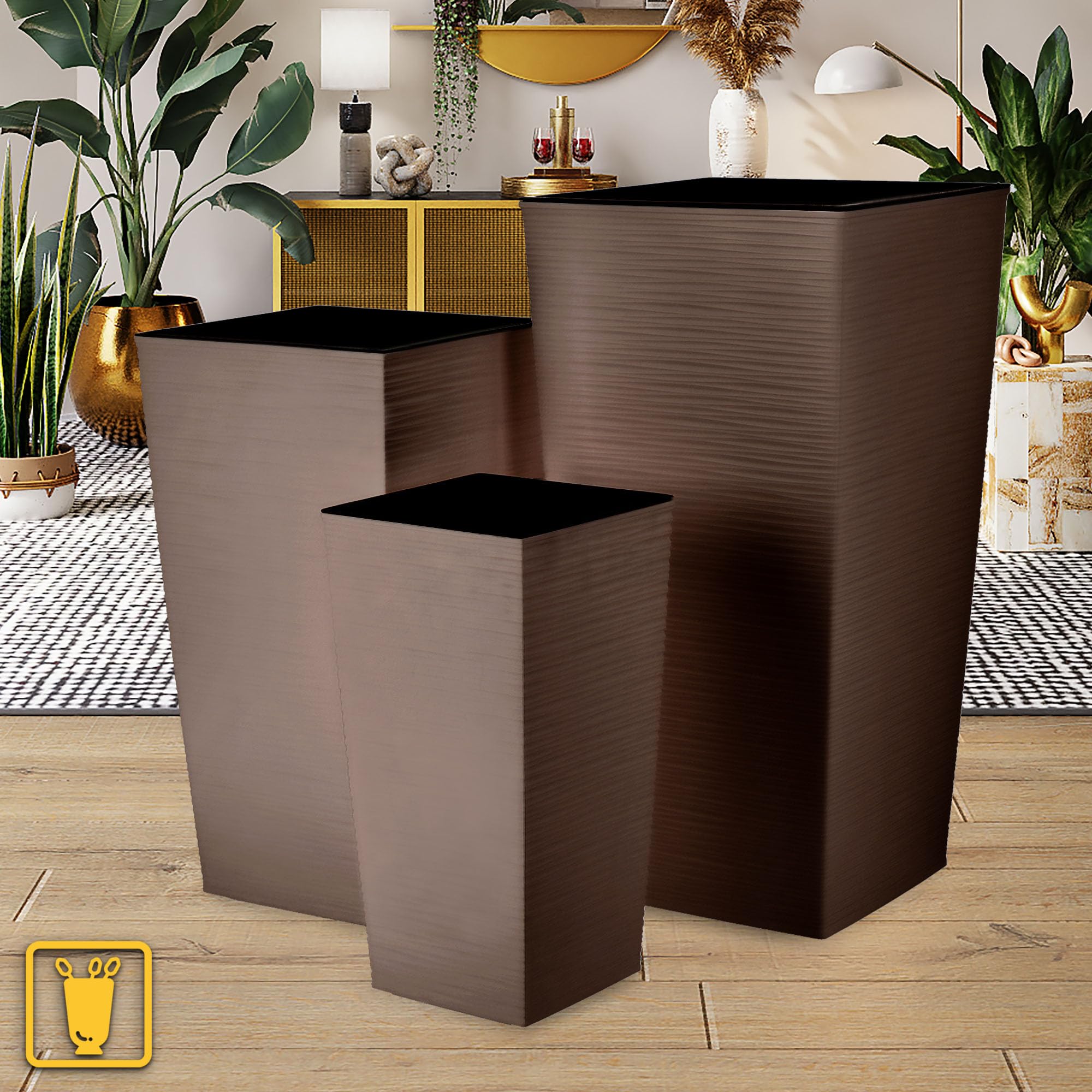 KADAX 3er Set Pflanzkübel mit Innentopf 46,5/57,5/68 cm Höhe, Mokka – wetterfeste & robuste Blumenkübel aus Kunststoff, Blumentöpfe für Innen- & Aussenbereich