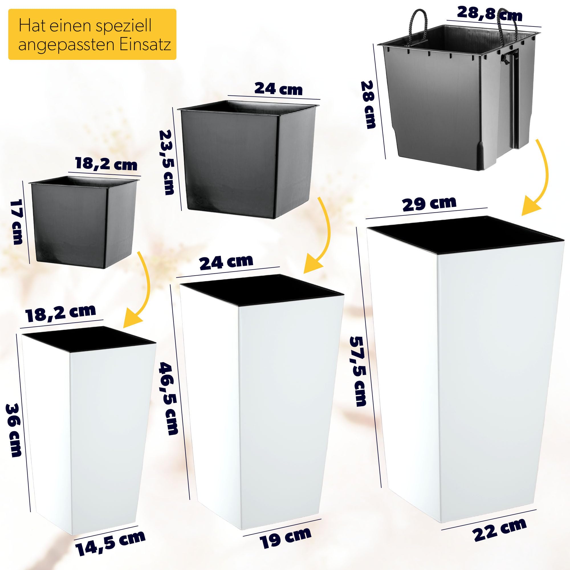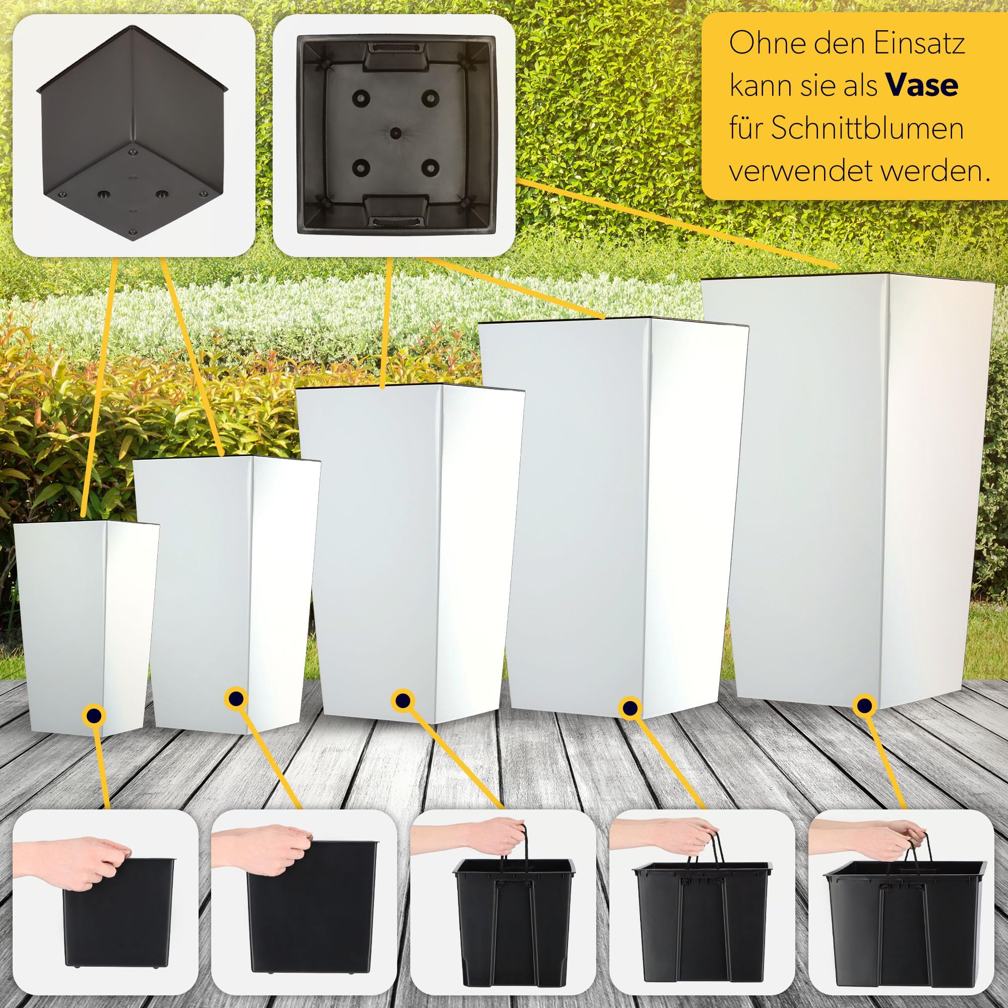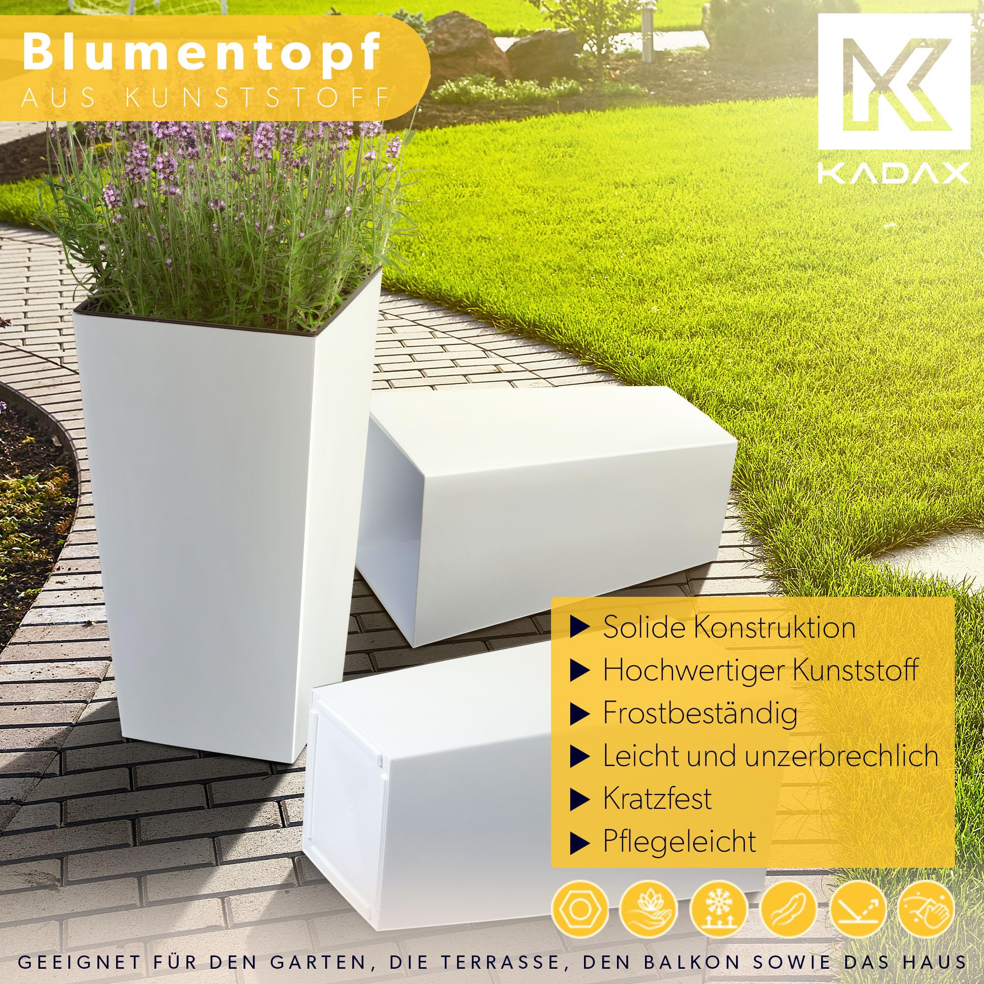 KADAX 3er Set Pflanzkübel mit Innentopf 36/46,5/57,5 cm Höhe, Weiss Glatt – wetterfeste & robuste Blumenkübel aus Kunststoff, Blumentöpfe für Innen- & Aussenbereich