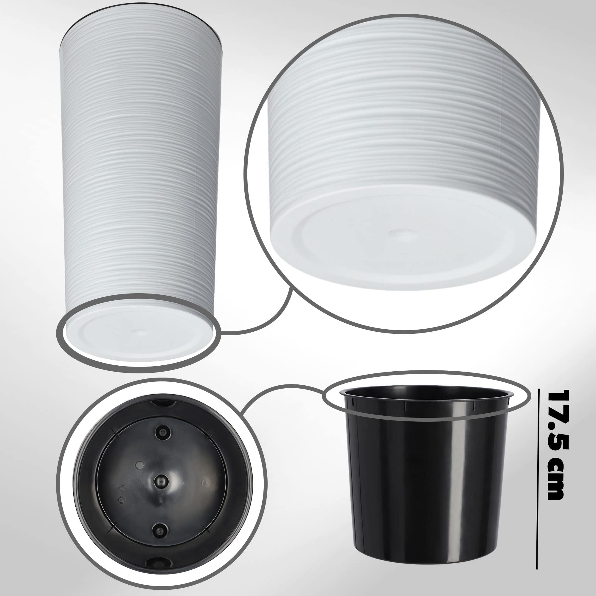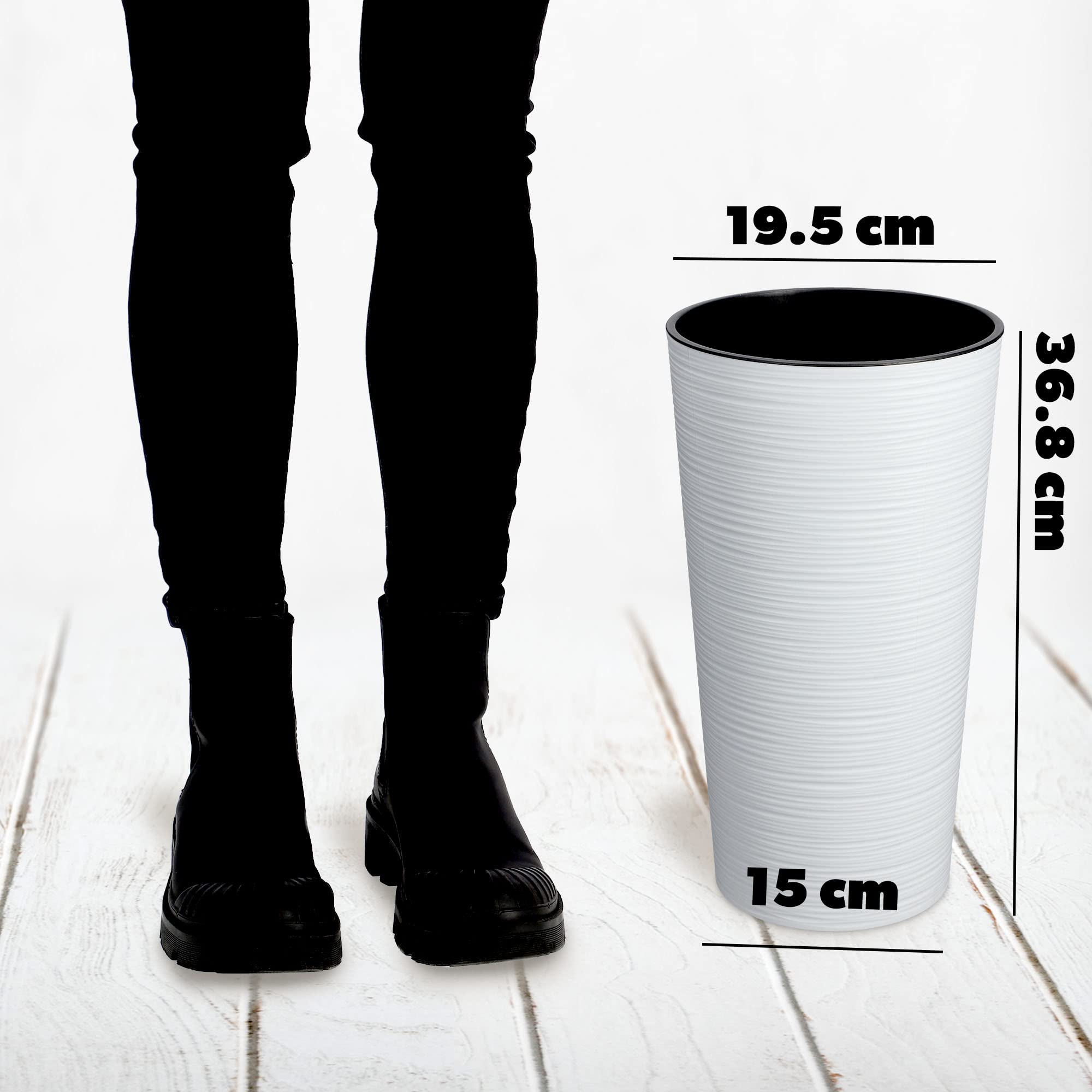 KADAX Pflanzkübel mit Innentopf Weiss Ø 19 cm, Höhe 36.8 cm – Moderner Pflanztopf mit Einsatz, Blumentopf aus robuster Kunststoff für Innen- und Aussenbereich, ideal für Wohnzimmer, Balkon, Büro