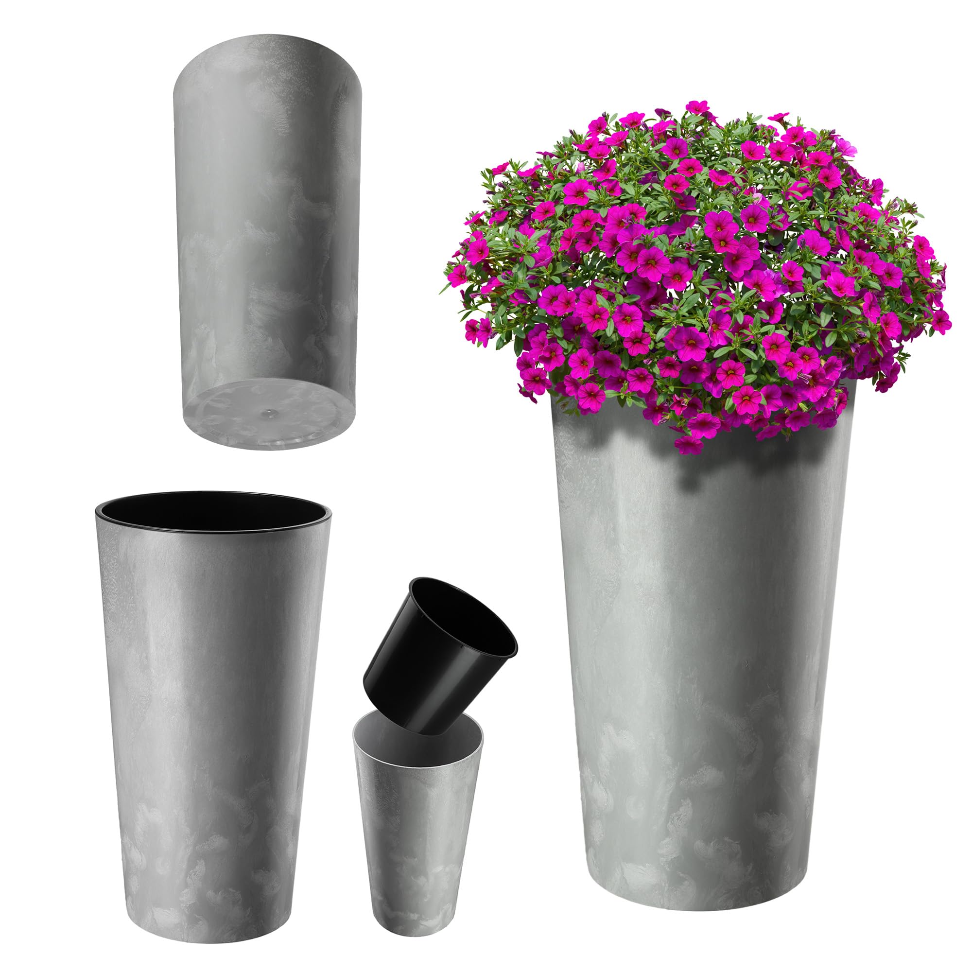 KADAX Pflanzkübel mit Innentopf Grau Ø 30 cm, Höhe 57.5 cm – Moderner Pflanztopf mit Einsatz, Blumentopf aus robuster Kunststoff für Innen- und Aussenbereich, ideal für Wohnzimmer, Balkon, Büro