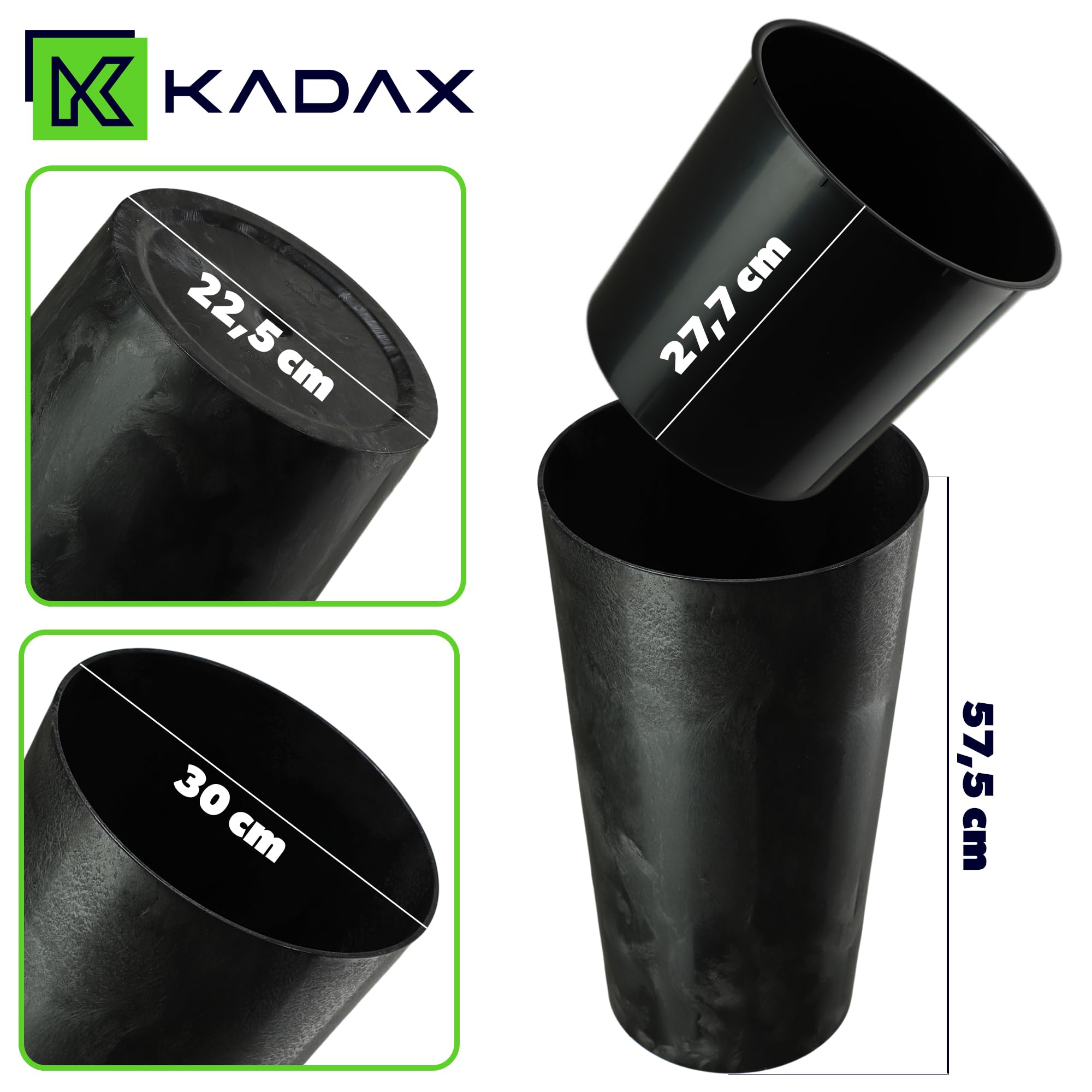 KADAX Pflanzkübel mit Innentopf Schwarz Ø 30 cm, Höhe 57.5 cm – Moderner Pflanztopf mit Einsatz, Blumentopf aus robuster Kunststoff für Innen- und Aussenbereich, ideal für Wohnzimmer, Balkon, Büro