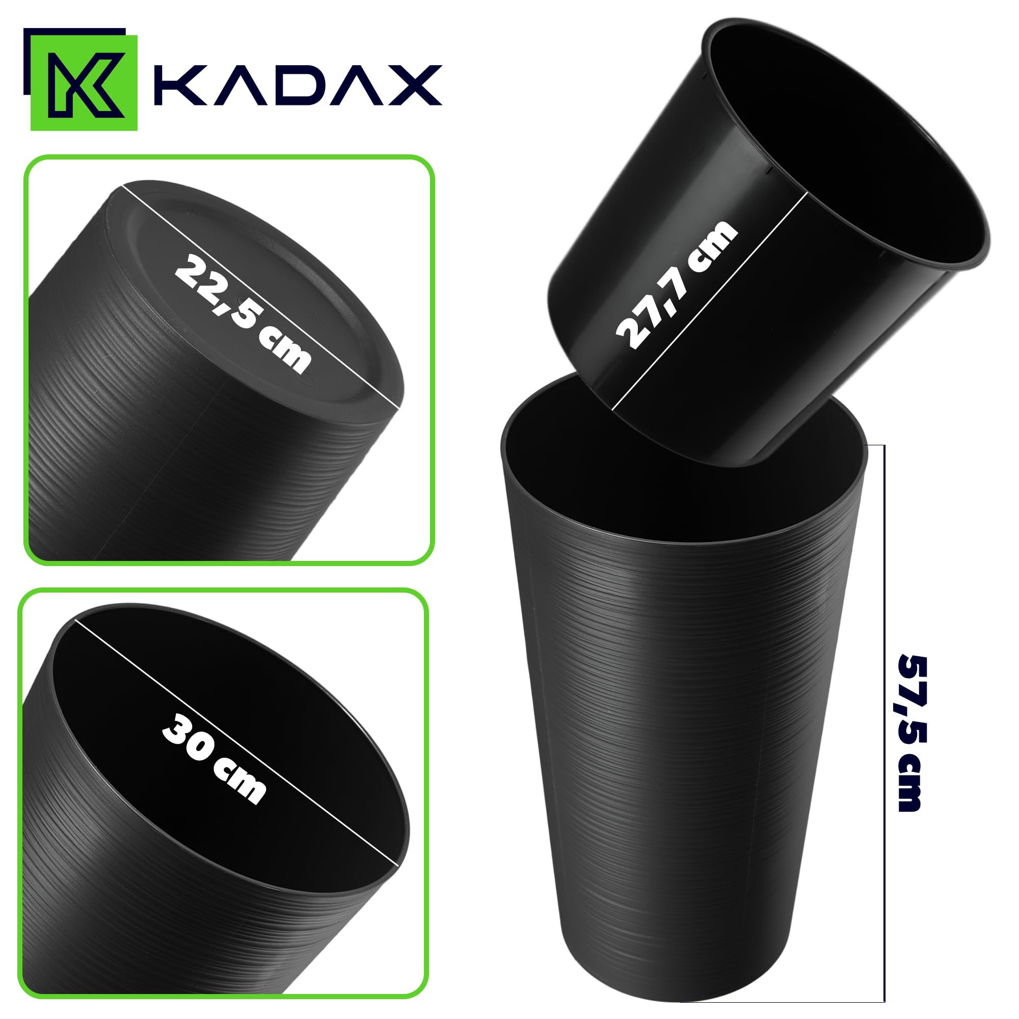 KADAX Pflanzkübel mit Innentopf Graphit Ø 30 cm, Höhe 57.5 cm – Moderner Pflanztopf mit Einsatz, Blumentopf aus robuster Kunststoff für Innen- und Aussenbereich, ideal für Wohnzimmer, Balkon, Büro
