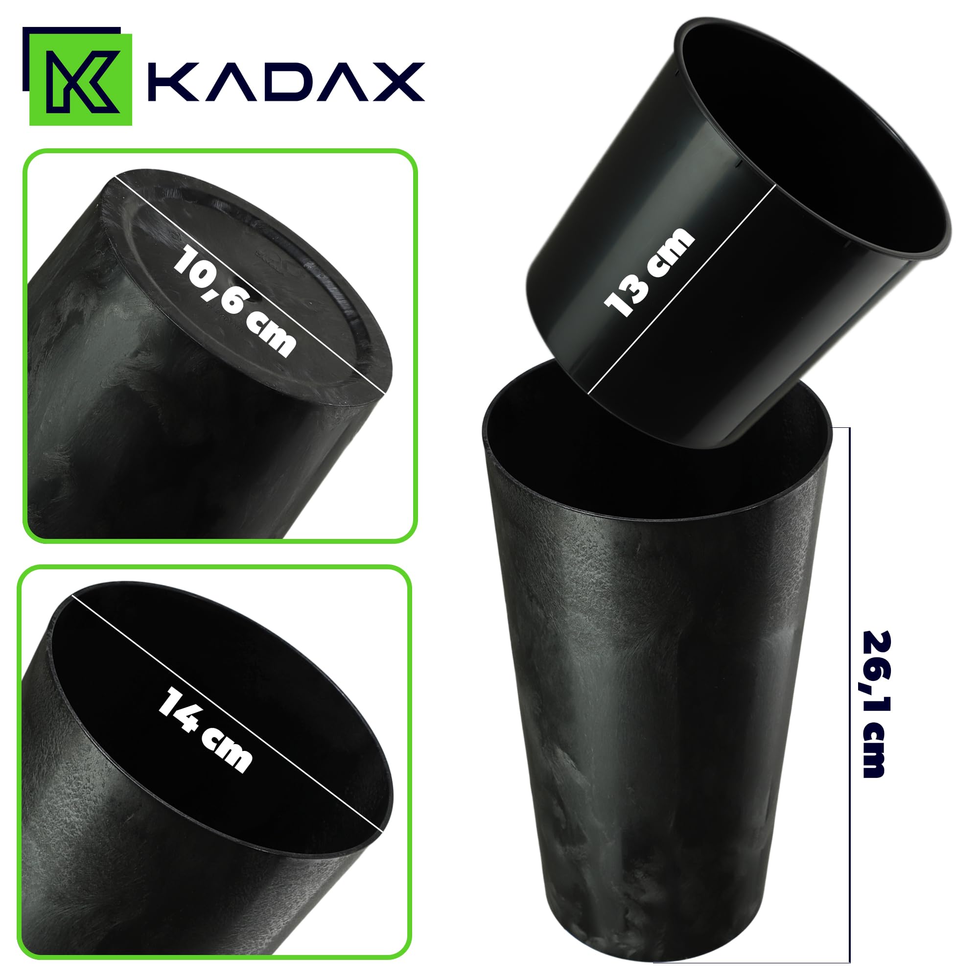 KADAX Pflanzkübel mit Innentopf Schwarz Ø 14 cm, Höhe 26.1 cm – Moderner Pflanztopf mit Einsatz, Blumentopf aus robuster Kunststoff für Innen- und Aussenbereich, ideal für Wohnzimmer, Balkon, Büro