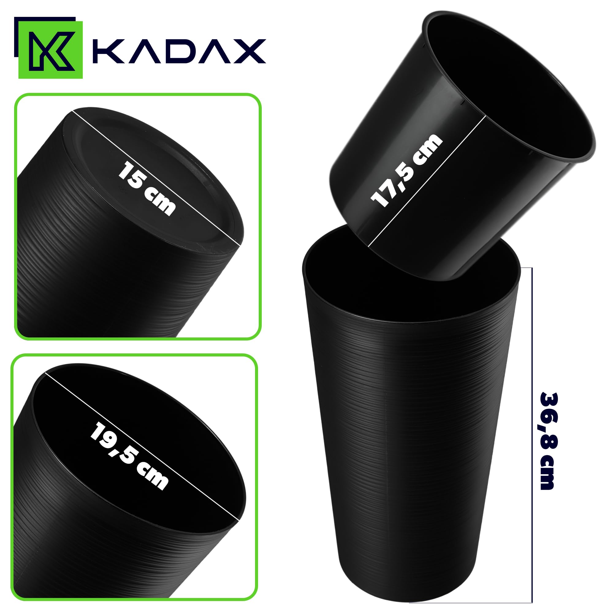KADAX Pflanzkübel mit Innentopf Graphit Ø 19.5 cm, Höhe 36.8 cm – Moderner Pflanztopf mit Einsatz, Blumentopf aus robuster Kunststoff für Innen- und Aussenbereich, ideal für Wohnzimmer, Balkon, Büro