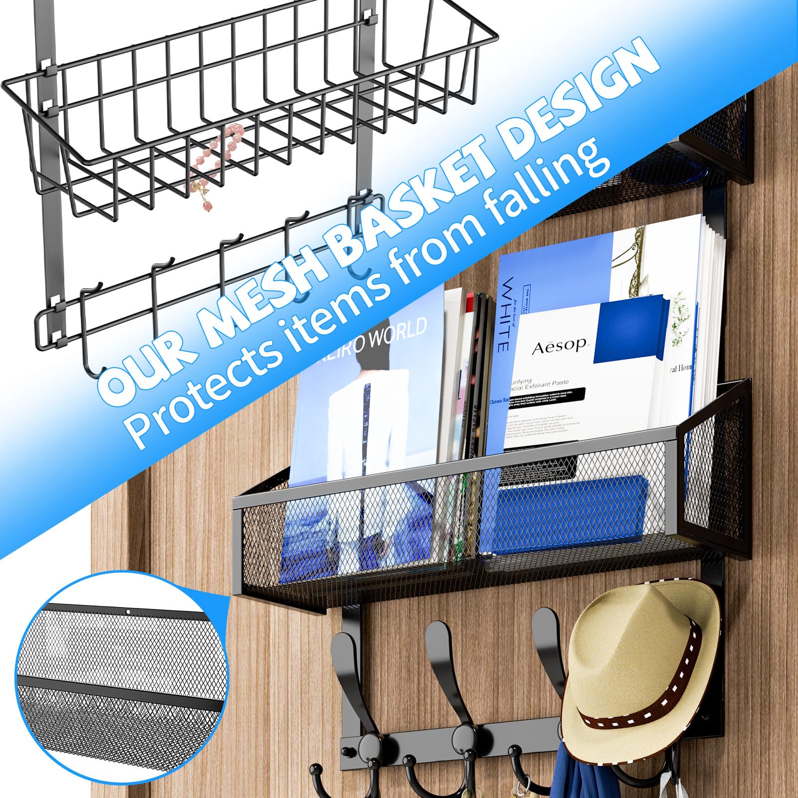 Kaiferty Türhaken-Organizer, Türaufhänger, Handtuchhalter, Netzkorb mit 12 Haken, Kleiderhaken hinter der Tür, Organizer für Badezimmer, Schlafzimmer, Küche, Büro (schwarz)