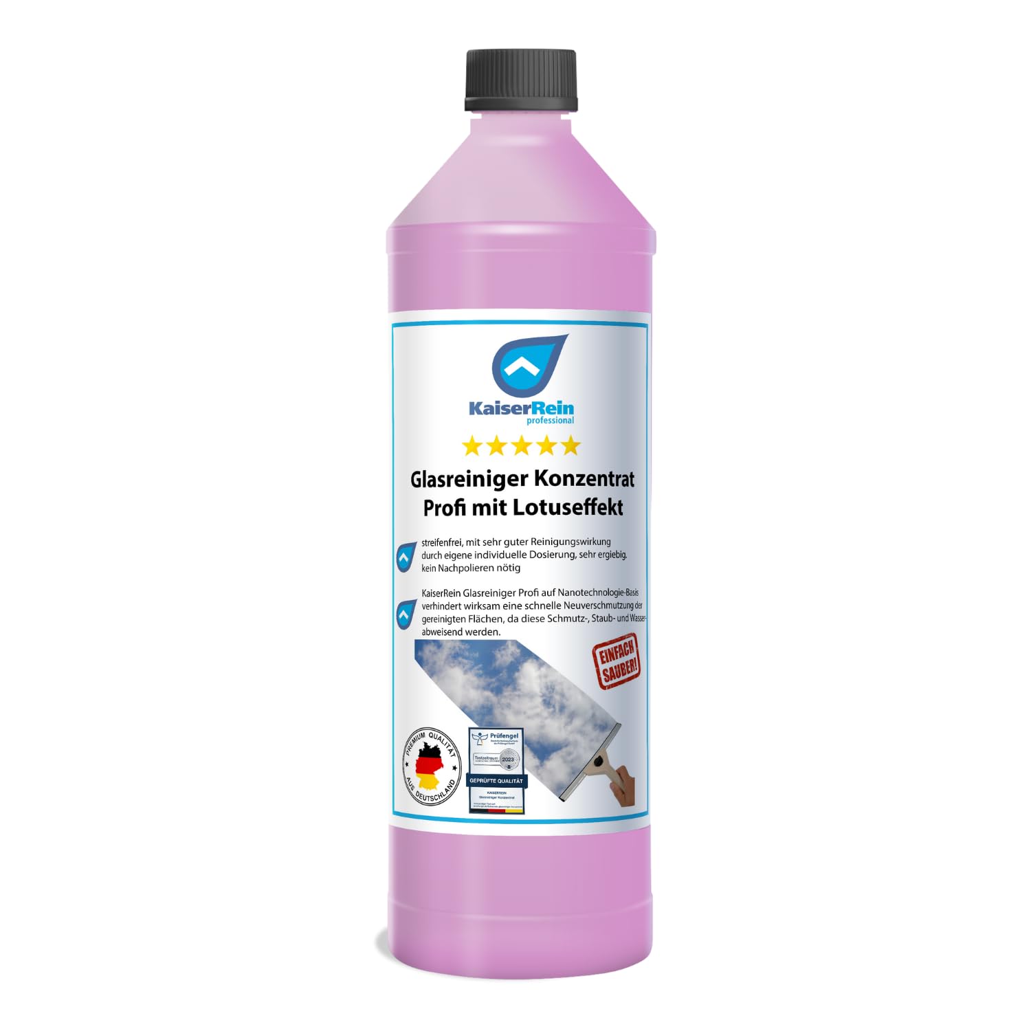 KaiserRein Glasreiniger Konzentrat mit Lotuseffekt 1L unser Profi Fenster-Reiniger I Fenstersauger geeignet I streifenfrei für Glas Fenster und Spiegel