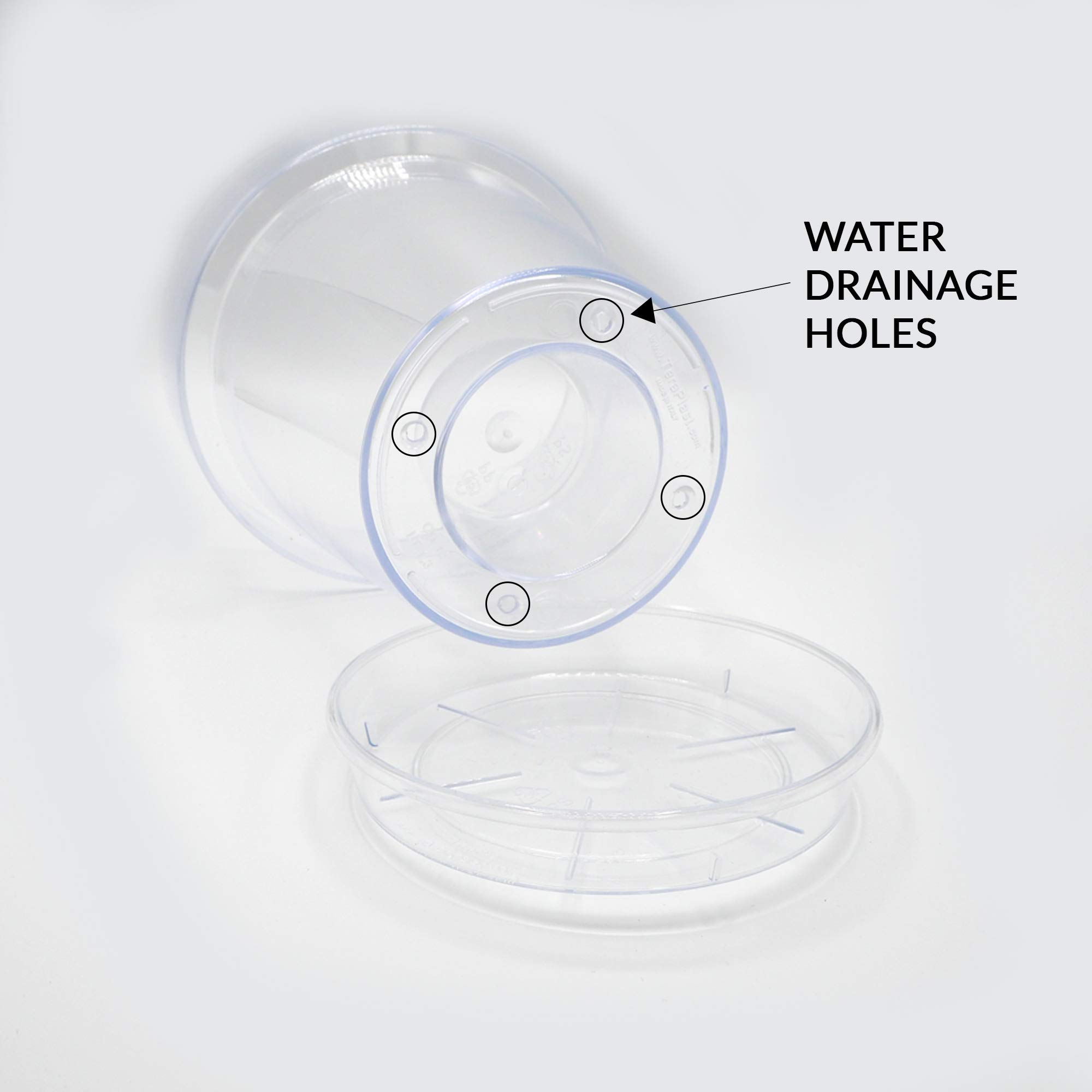 Kalapanta 5 transparente Plastiktöpfe für Orchideen mit Entwässerungslöchern und 5 Untersetzers (5, Ø 14 cm)