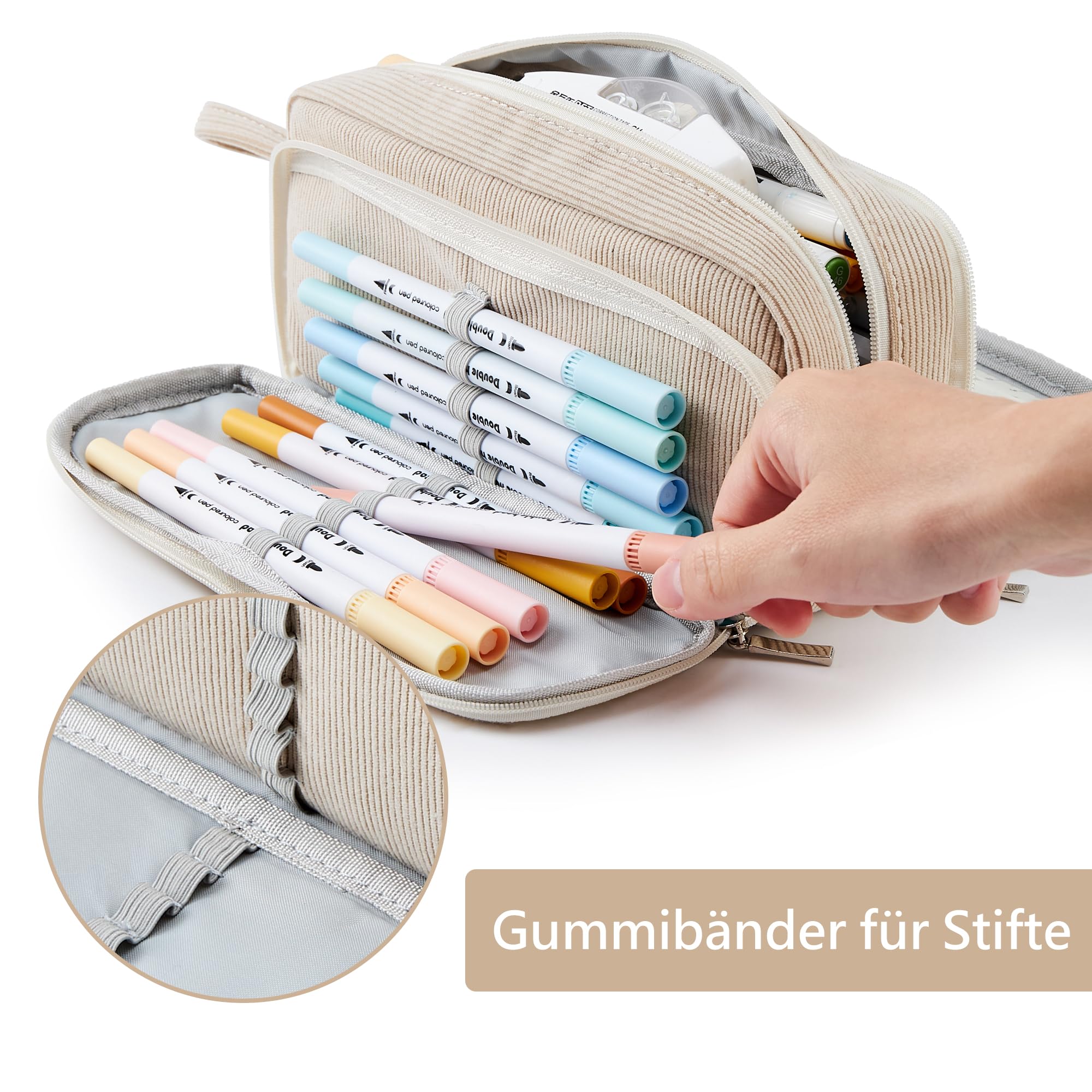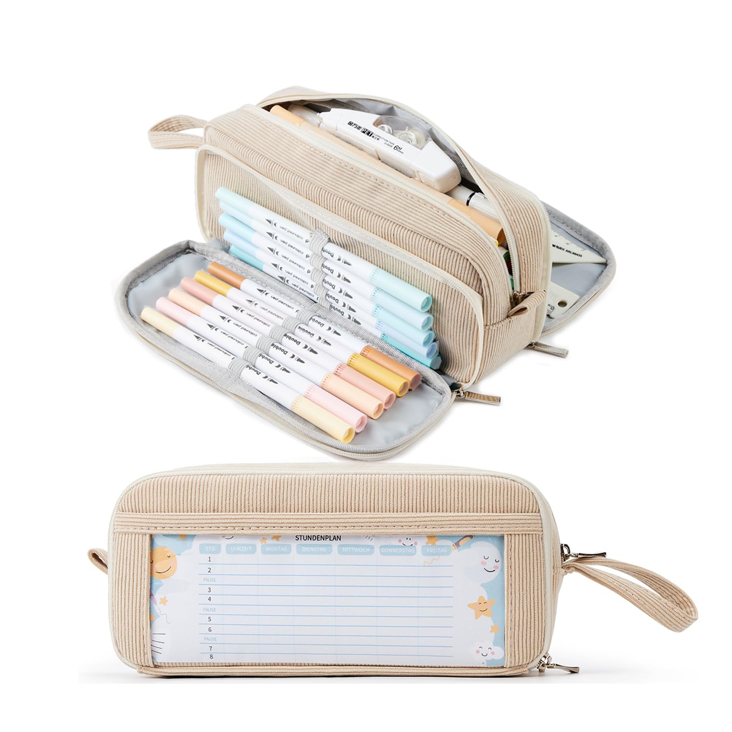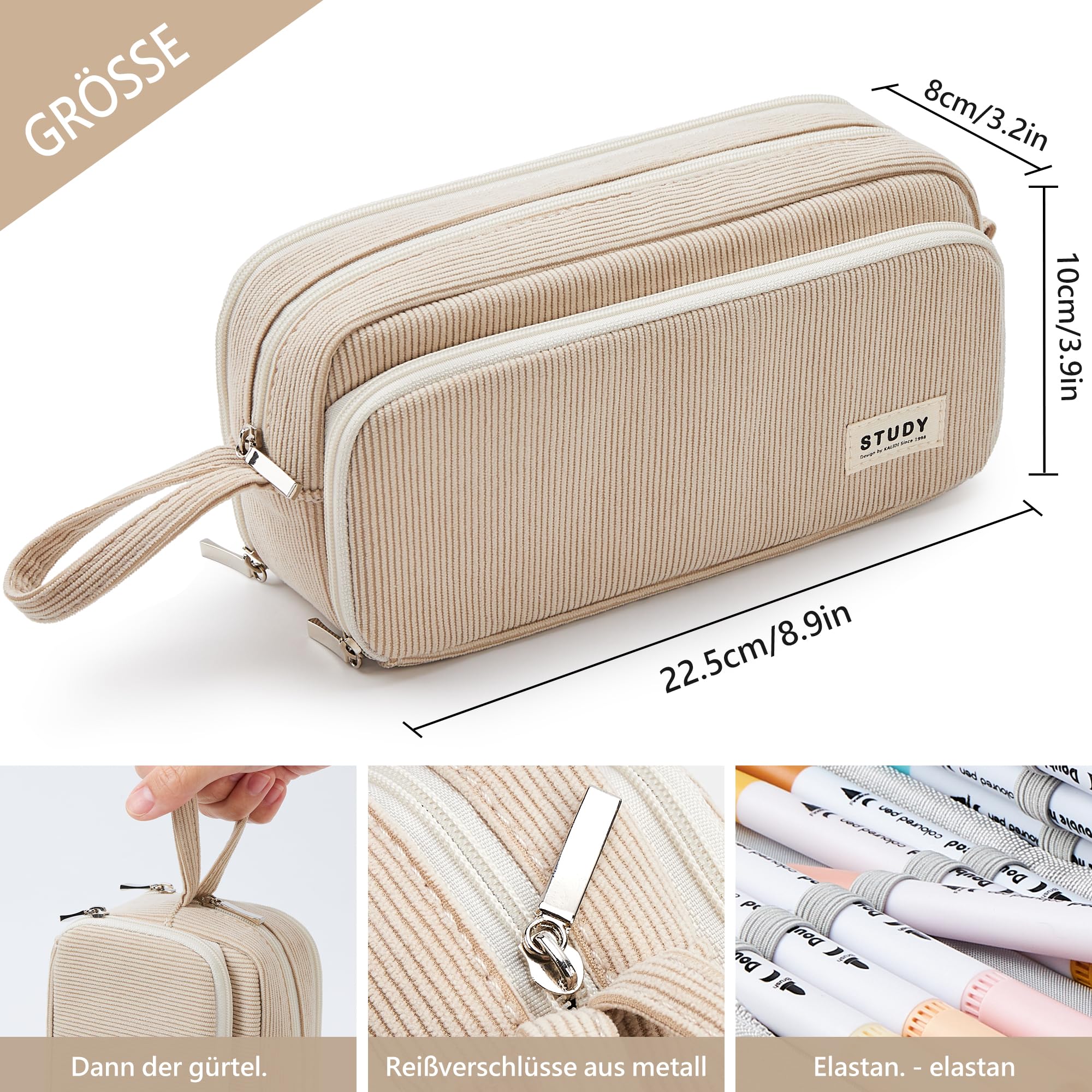 KALIDI Cord-stoff Federmäppchen mit 3 Fächer Grosse Kapazität Mäppchen Federtasche Stiftetasche Pencil Case Bleistifttasche für Schule & Büro