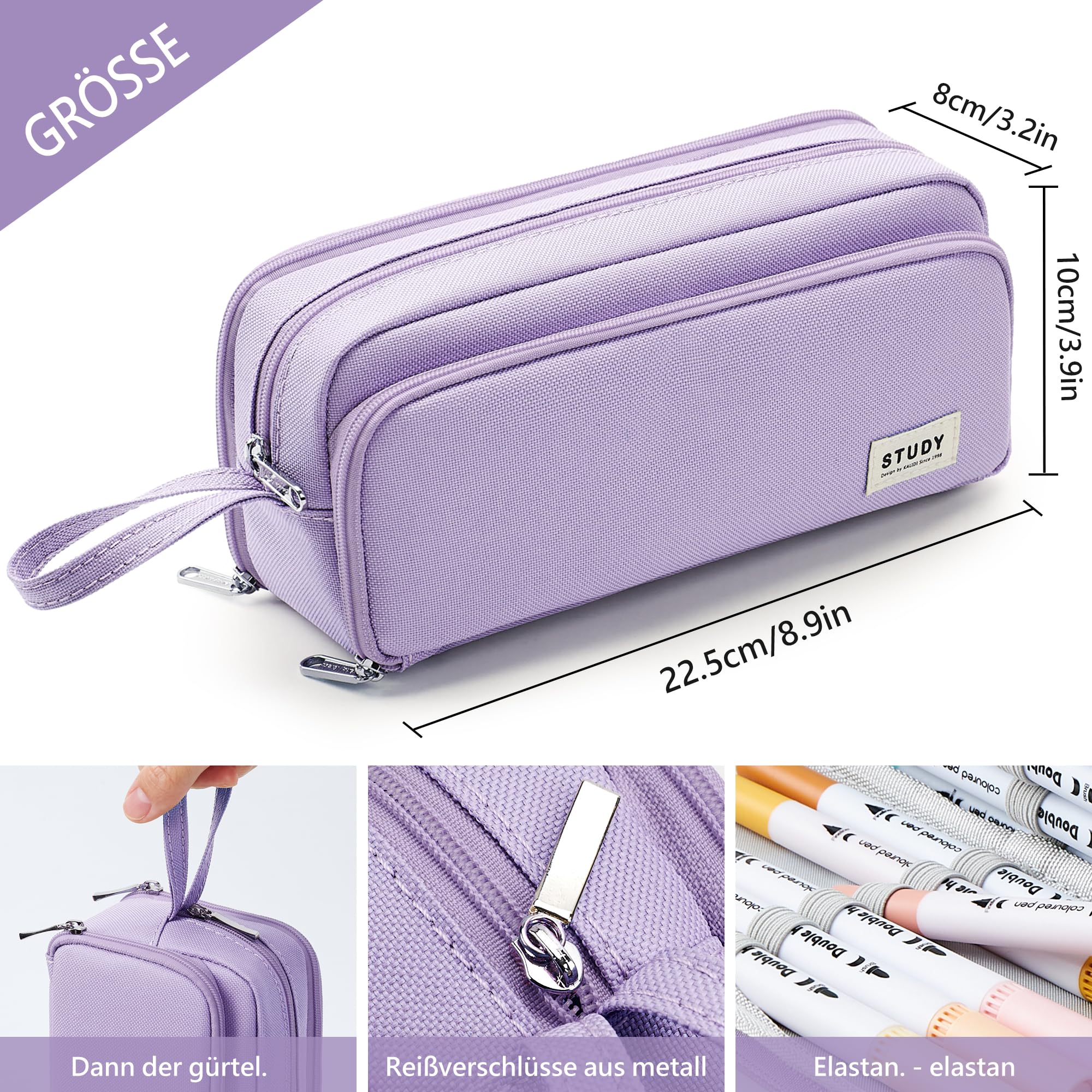 KALIDI Federmäppchen mit 3 Fächer Grosse Kapazität Mäppchen Federtasche Stiftetasche Pencil Case Bleistifttasche für Schule & Büro