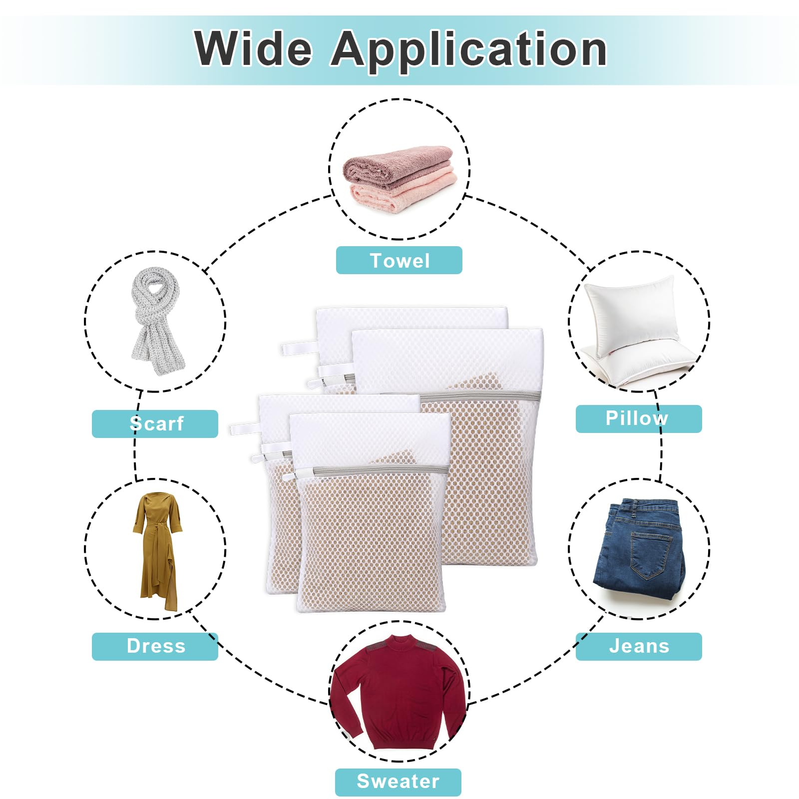 Produktname: 4 Wäschesäcke aus Netzstoff mit AufhängeschlaufeStil: 2 Stück hellgrau mit Band 23*30 + 2 Stück hellgrau mit Band 30*40Material: PolyesterBruttogewicht: 140 gEinzelproduktgrösse: 23*30 cm; 40*30 cmVerpackungsgrösse: 30*20*2,4 cmPackliste: 4 Wäschesäcke