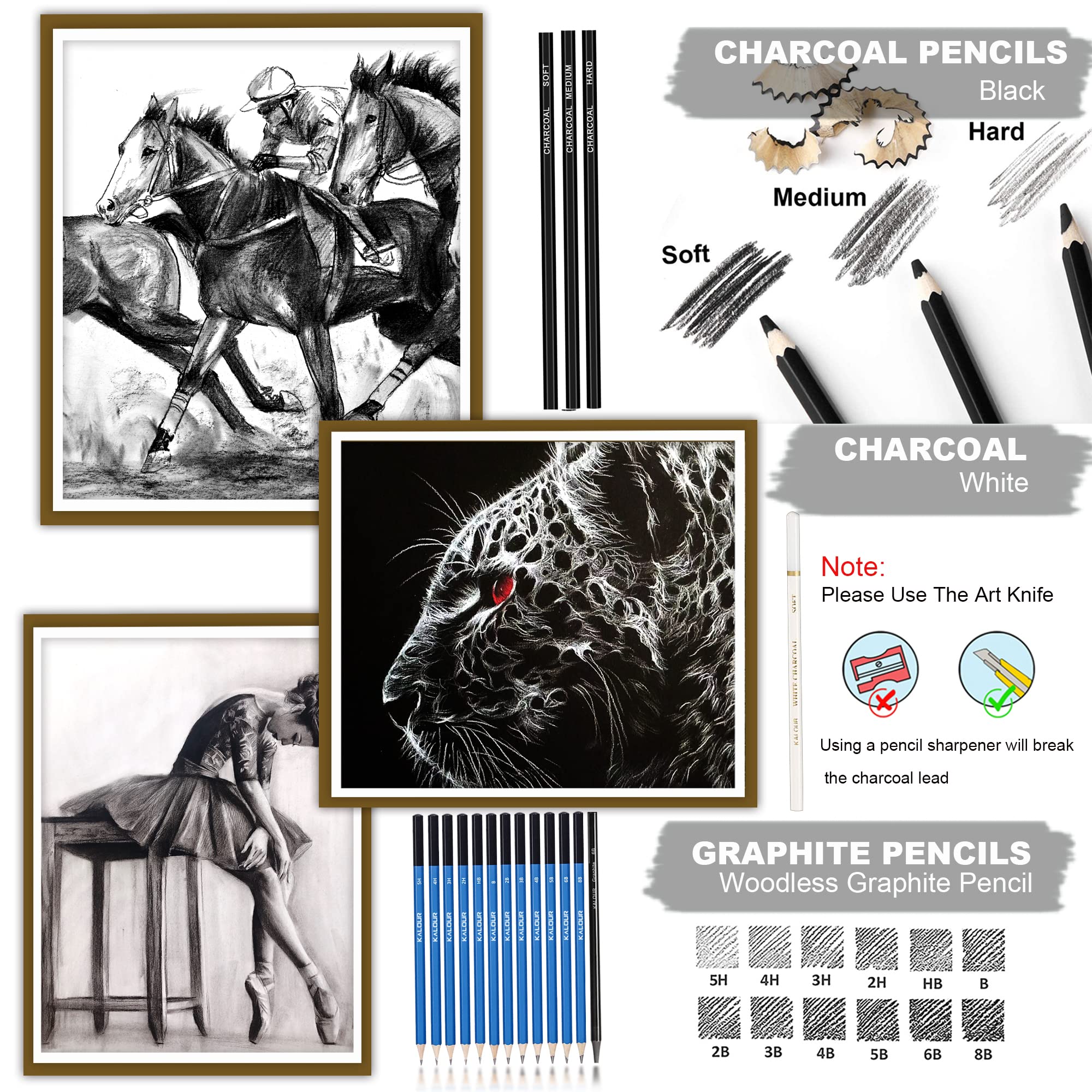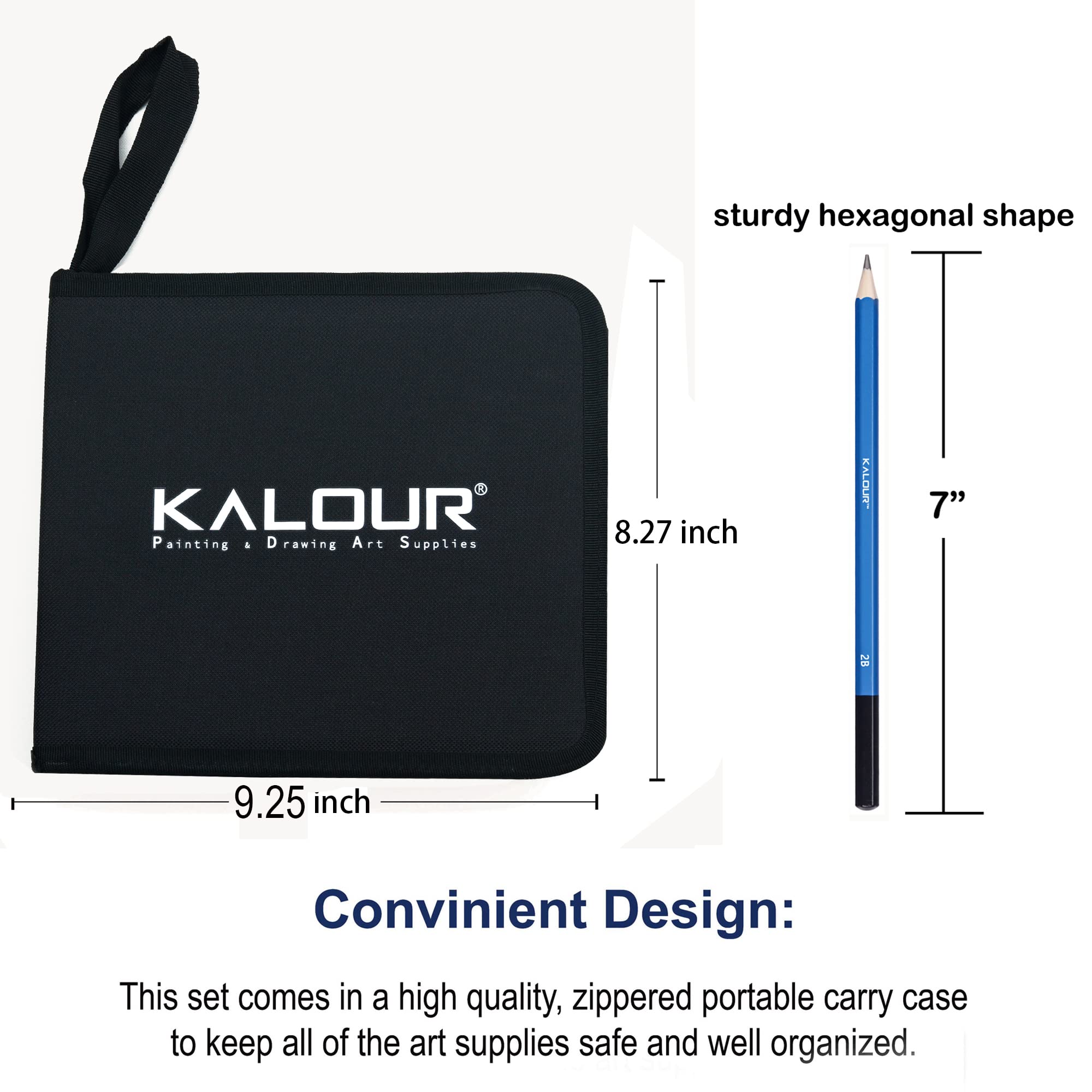 Kalour 33-teiliges Profi-Zeichen-Set mit Skizzierstiften, tragbarer Reissverschluss-Reisetasche - Kohlestifte, Zeichenstifte, Radiergummi. Kunstbedarf für Künstler, Anfänger und Erwachsene