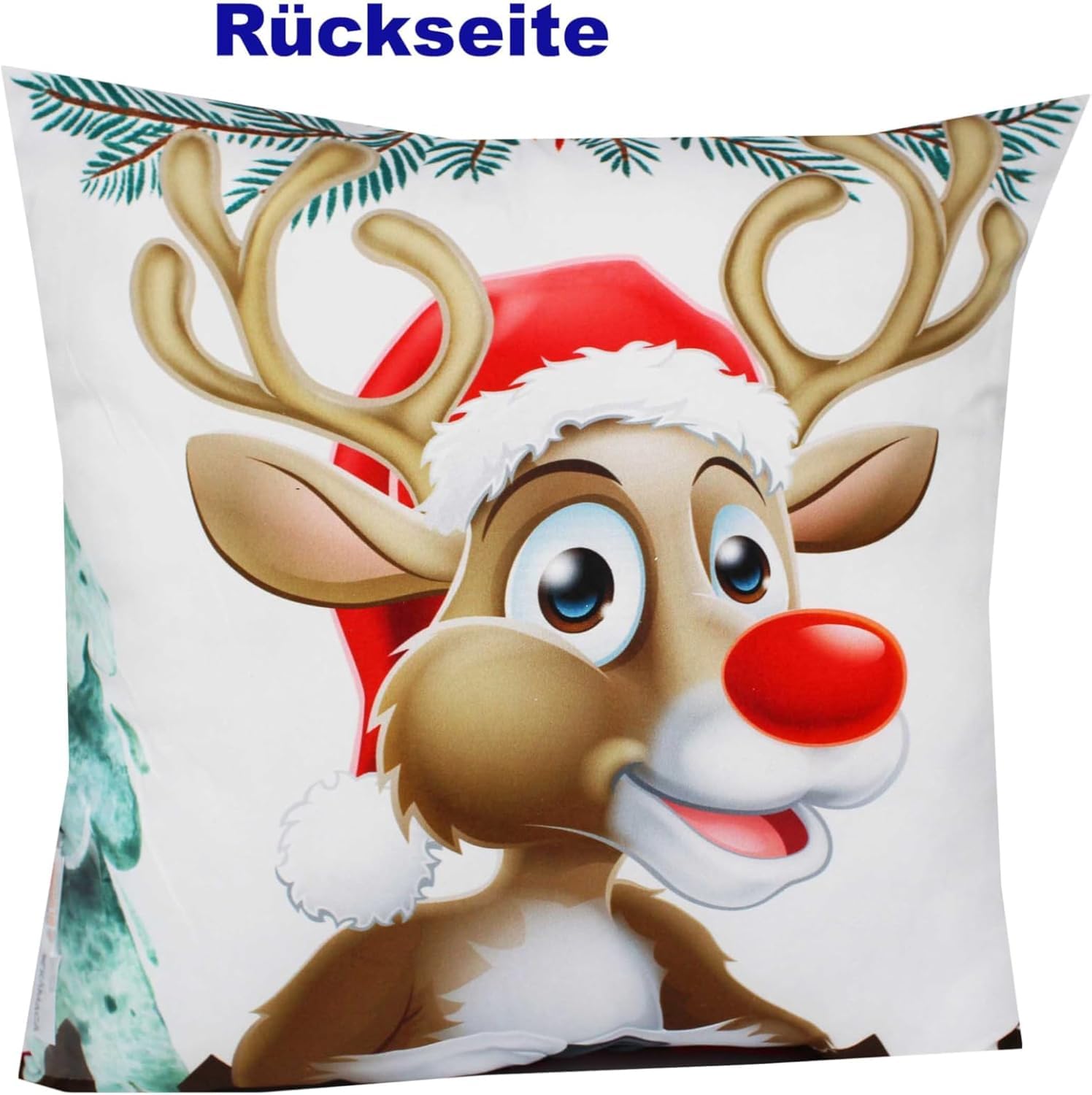 KAMACA Weihnachtskissen mit Kissenfüllung 43x43 cm festliches Dekokissen mit 3 Taschen zum Befüllen originelles Kinder Familie und Freunde Weihnachten Nikolaus (Rentier Rudi)