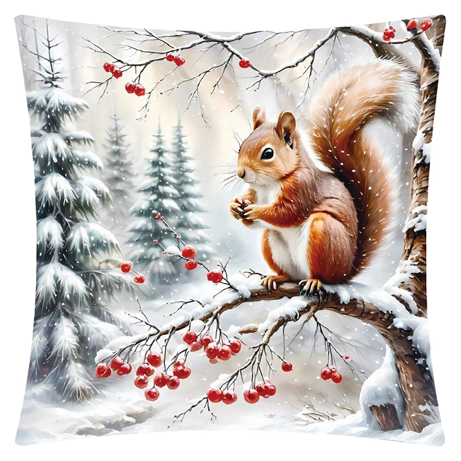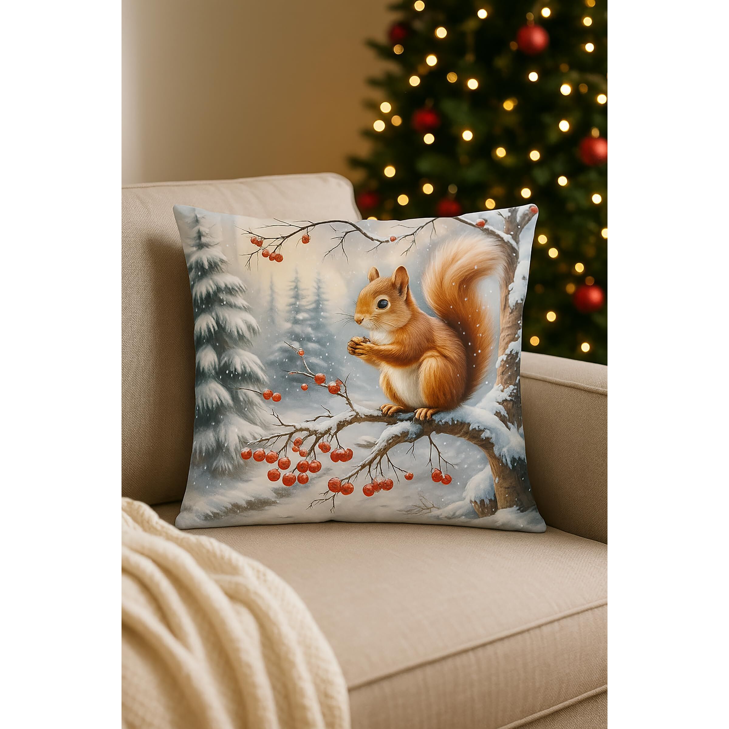 KAMACA Kissen Eichhörnchen 40x40 cm mit Füllung Deko-Kissen mit süssem Wintermotiv & Reissverschluss Gefülltes Sofakissen für Weihnachten, Winter & gemütliche Wohn-Dekoration (Eichhörnchen)