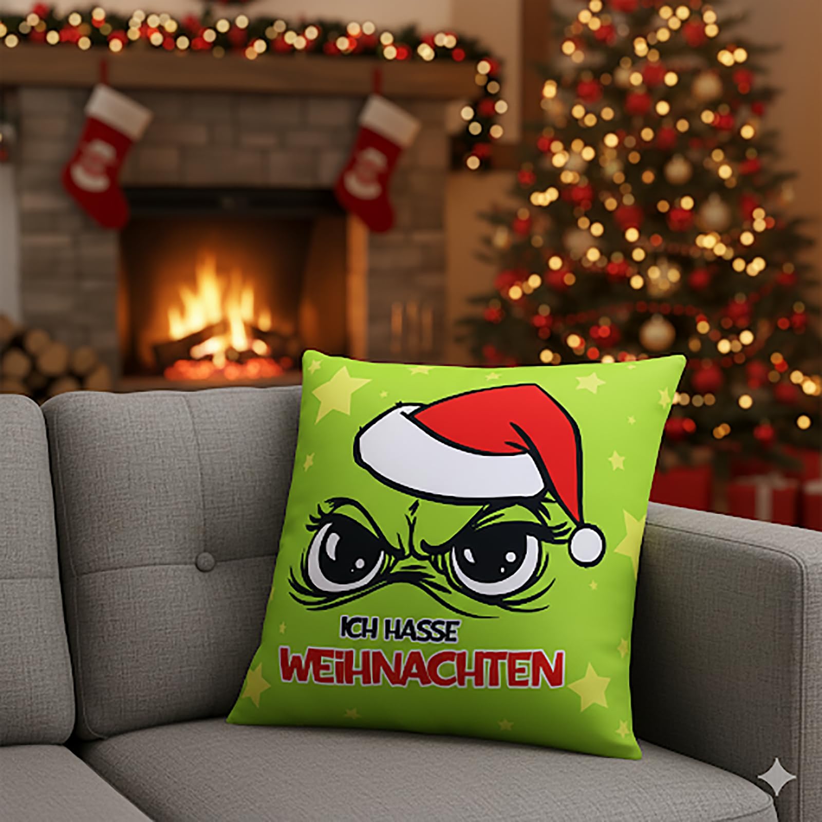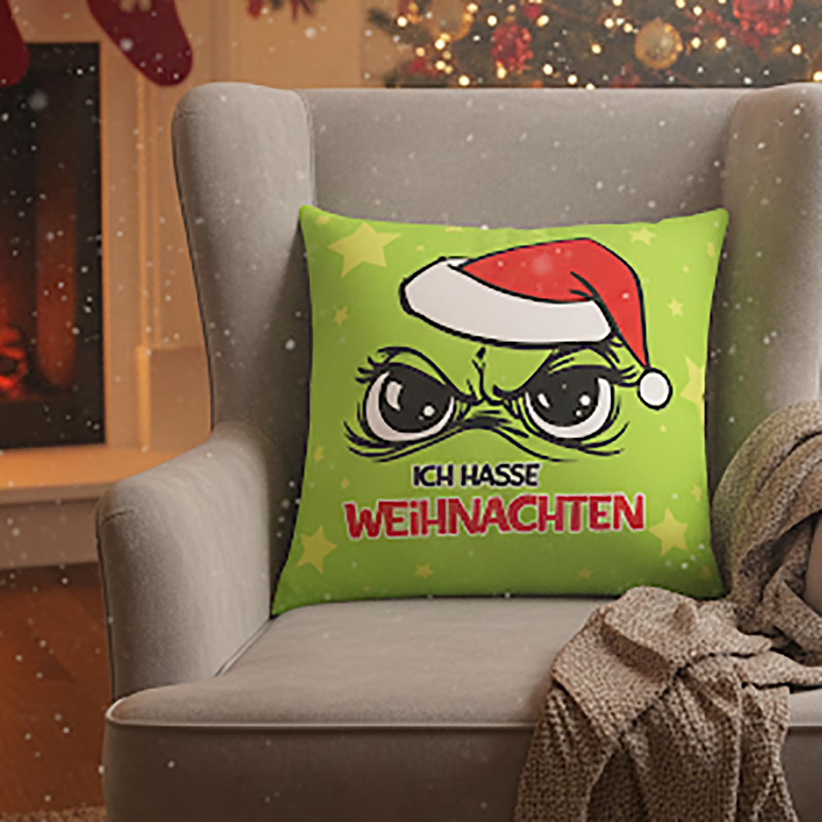 KAMACA Anti Weihnachts-Kissen Lustiges Kissen mit Spruch humorvolles Geschenk für Weihnachtsmuffel Inklusive Füllung flauschig frech für Sofa Büro Weihnachten (Muffel - Ich Hasse Weihnachten)