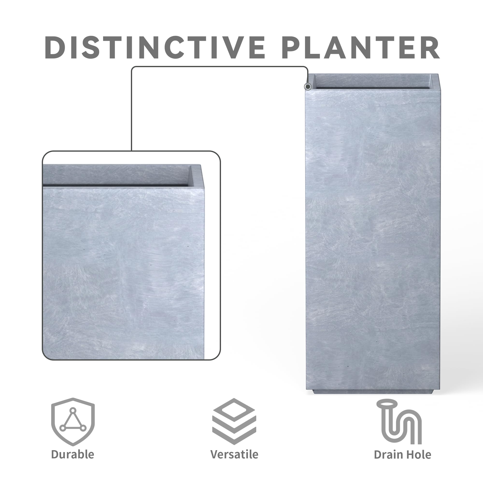 Kante 51,6 cm hoher rechteckiger Beton-Übertopf mit Ablaufloch und Gummistopfen für drinnen und draussen, Haus, Terrasse, Garten, Schiefergrau