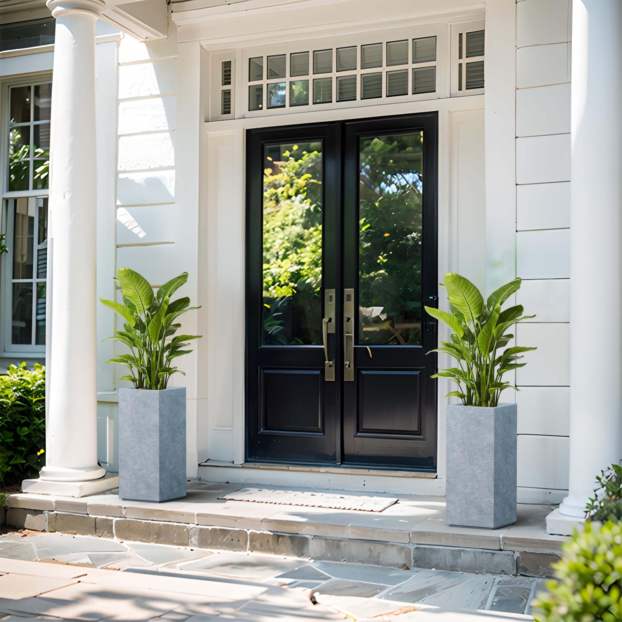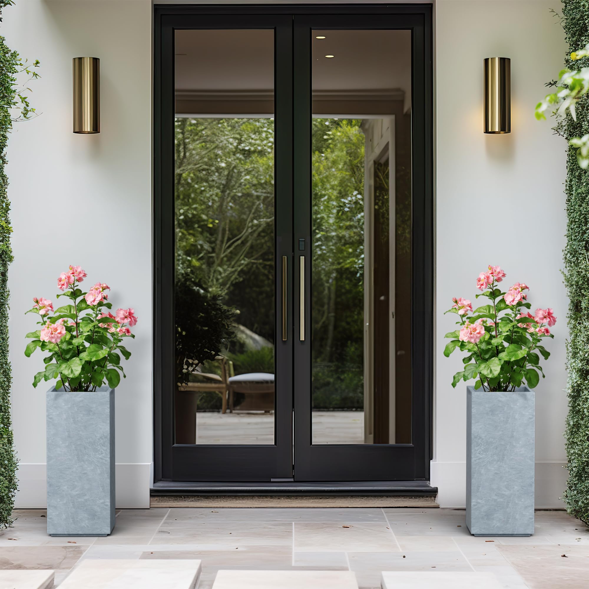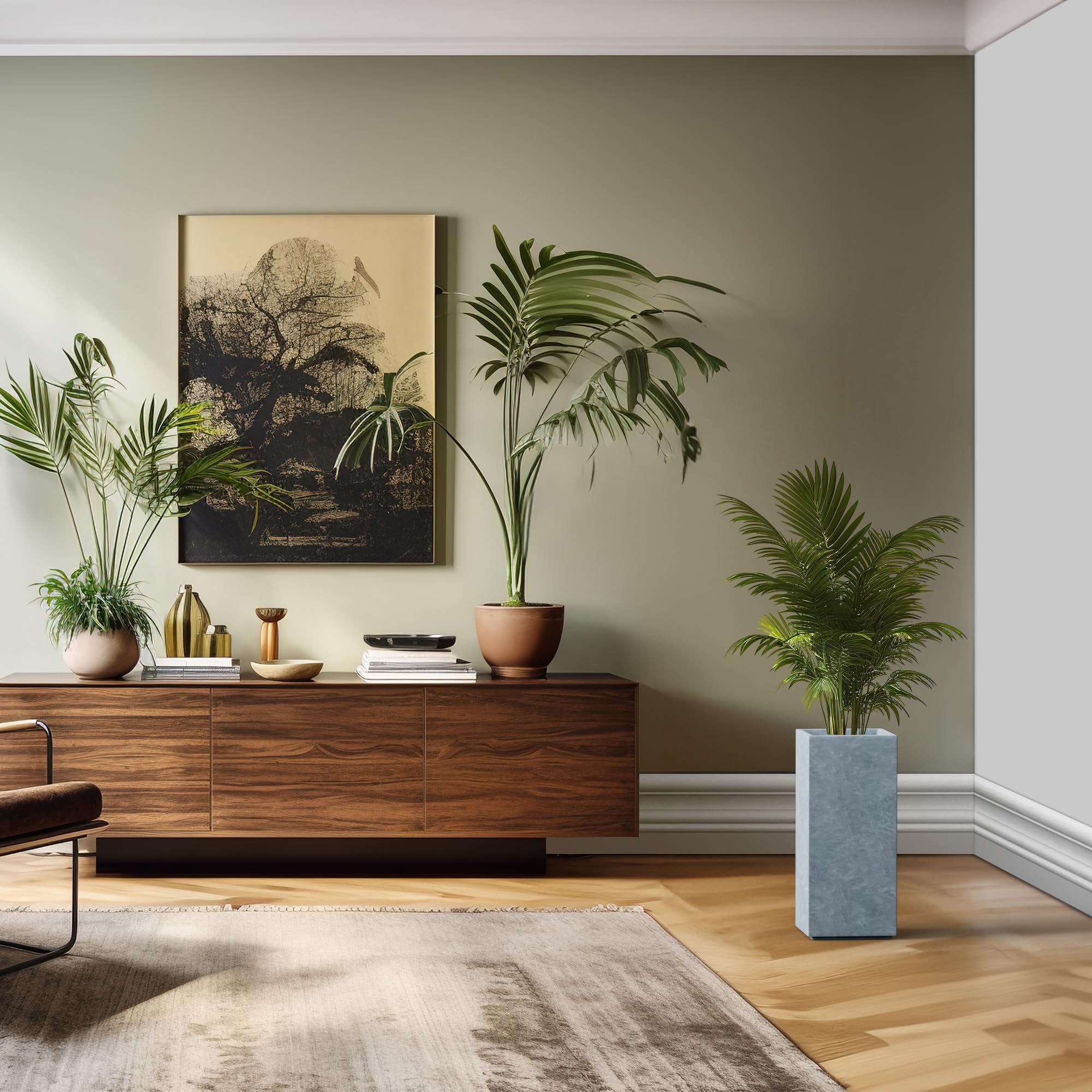 Diese eleganten, quadratischen Pflanzgefässe haben eine authentische Betonoberfläche mit sichtbaren Poren und machen sie zu schönen, zeitgenössischen Stücken. Das Aussehen und die Haptik sind wahre Beton, aber es wiegt wesentlich weniger als es aussieht. Es hat auch eine sehr glatte Oberfläche anstelle von rauen Beton-Töpfern, die Sie vielleicht gewohnt sind. Die Grösse ist sehr grosszügig und kann eine gute Menge an Pflanzen aufnehmen, ohne überfüllt auszusehen. Moderner, gerader Linien und Beton. Sieht toll aus auf dem Balkon der Wohnung oder auf der grossen Terrasse im Garten. Diese hohen Beton Pflanzgefässe passen am besten zu modernen Designs. Sie verfügen über klare Winkel und reine Zementoberfläche, die Ihrem Lieblingsraum Eleganz verleiht. Verwenden Sie sie mit hohen Pflanzen für einen dimensionalen Effekt. Hergestellt aus Leichtbeton im Herstellungsprozess. Dieses Verbundmaterial hat kein Gummi, Kunststoff und Stahl. Dieses Material hat alle Vorteile von Beton wie Festigkeit, Haltbarkeit, Witterungs- und Beschädigungsbeständigkeit. Materialien bestehen aus Zement und witterungsbeständigem Fiberglas. Dieses Material hat eine starke UV-beständige Fähigkeit und bleibt gut in Wind, Regen, Hitze und Kälte. Durch das Hinzufügen von FiberClay ist der Pflanztopf aufgrund seines geringen Gewichts viel einfacher zu bewegen.