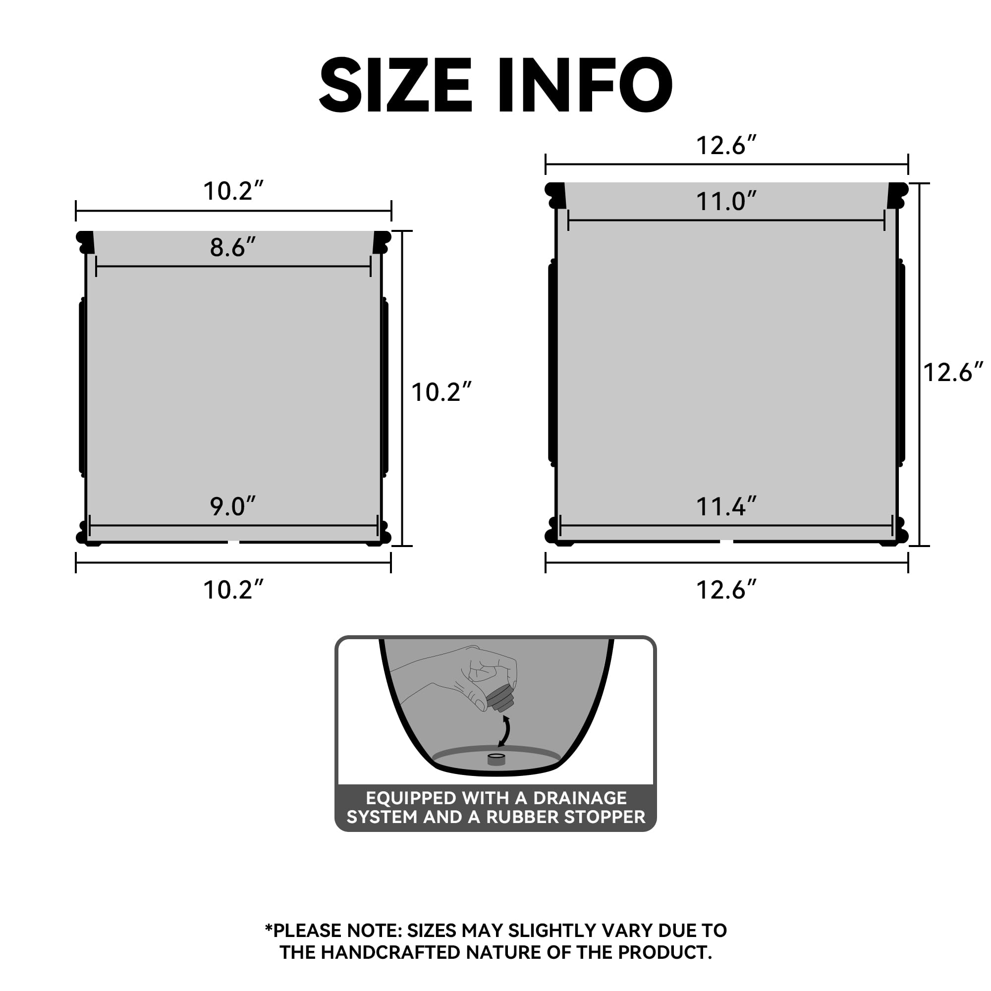 Kante Quadratischer Übertopf aus Beton mit Löwenkopf, 32,5 cm grosser Blumentopf mit Drianage, modernes Dekor im englischen Stil für Zuhause, Terrasse, Garten, Ölgeriebener Bronze, eleganter Beton-Übertopf – Entdecken Sie ein modernes Design mit glatten, fliessenden Kurven und einer natürlich verwitterten Oberfläche, die zeitlose Attraktivität ausstrahlt. Mit Sorgfalt gefertigt, verbindet dieses Statement-Stück nahtlos zeitgenössischen Stil mit organischer Textur, mit subtilen Poren, die seine Authentizität verstärken. Er verleiht verschiedenen Umgebungen einen raffinierten Hauch von Charakter. Handgefertigter Blumentopf – Hergestellt aus einer hochwertigen Betonmischung, maximiert dieser Topf Haltbarkeit, Stärke und Beständigkeit gegen Wetter und Beschädigungen. Seine dauerhafte Farbe, kombiniert mit UV-Beständigkeit, sorgt dafür, dass er sein lebendiges Aussehen unter den Bedingungen im Freien beibehält. Gross und vielseitig – ob Sie eine Pflanze im Innenbereich präsentieren oder auf der Vorderstufe, Veranda oder Terrasse positionieren, dieser grosszügig dimensionierte Übertopf wertet moderne, minimalistische und traditionelle Stile mit seinem einzigartigen Design auf. Seine Vielseitigkeit macht ihn gut geeignet für eine Vielzahl von Umgebungen. Drainagesystem: Unser Pflanztopf verfügt über Drainagelöcher für effizientes Wassermanagement, jeweils mit einem Gummistopfen für den Innen- und Aussenbereich ausgestattet. Geniessen Sie mühelose Gartenarbeit mit minimalem Pflegeaufwand und fördern Sie eine gesunde Umgebung für Ihre Pflanzen.