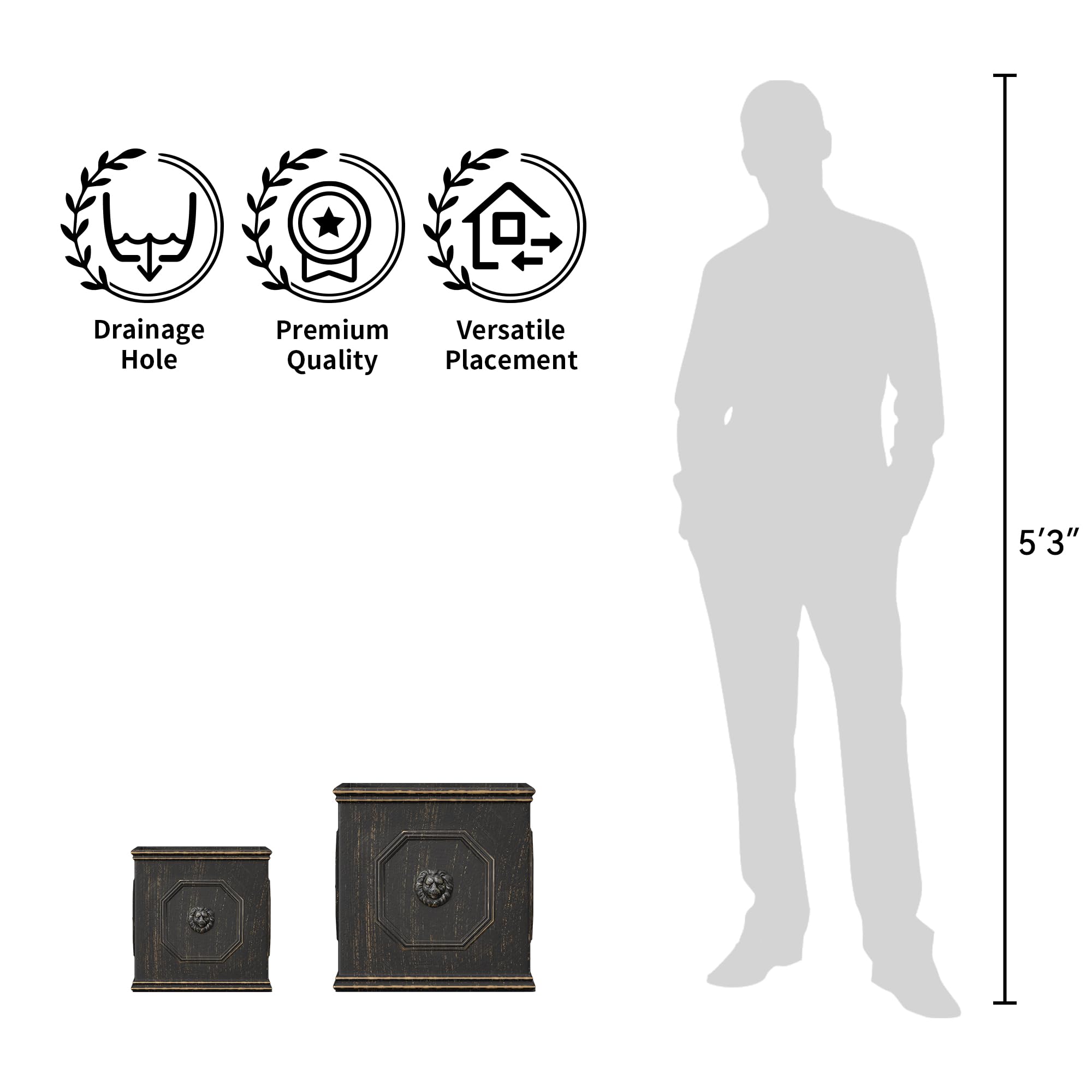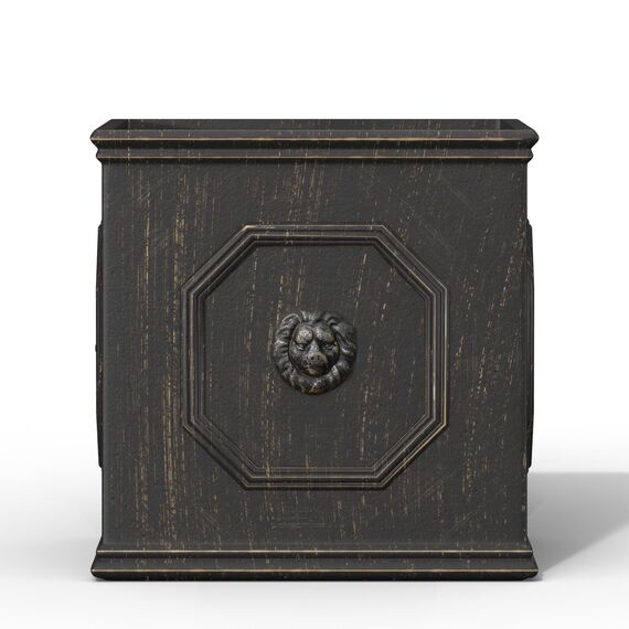 Kante Quadratischer Pflanzkübel aus Beton, Löwenkopf, 32,5 cm, grosser Blumentopf mit Drianage, modernes Dekor im englischen Stil, Dekoration für Zuhause, Terrasse, Garten, ölgeriebene Bronze