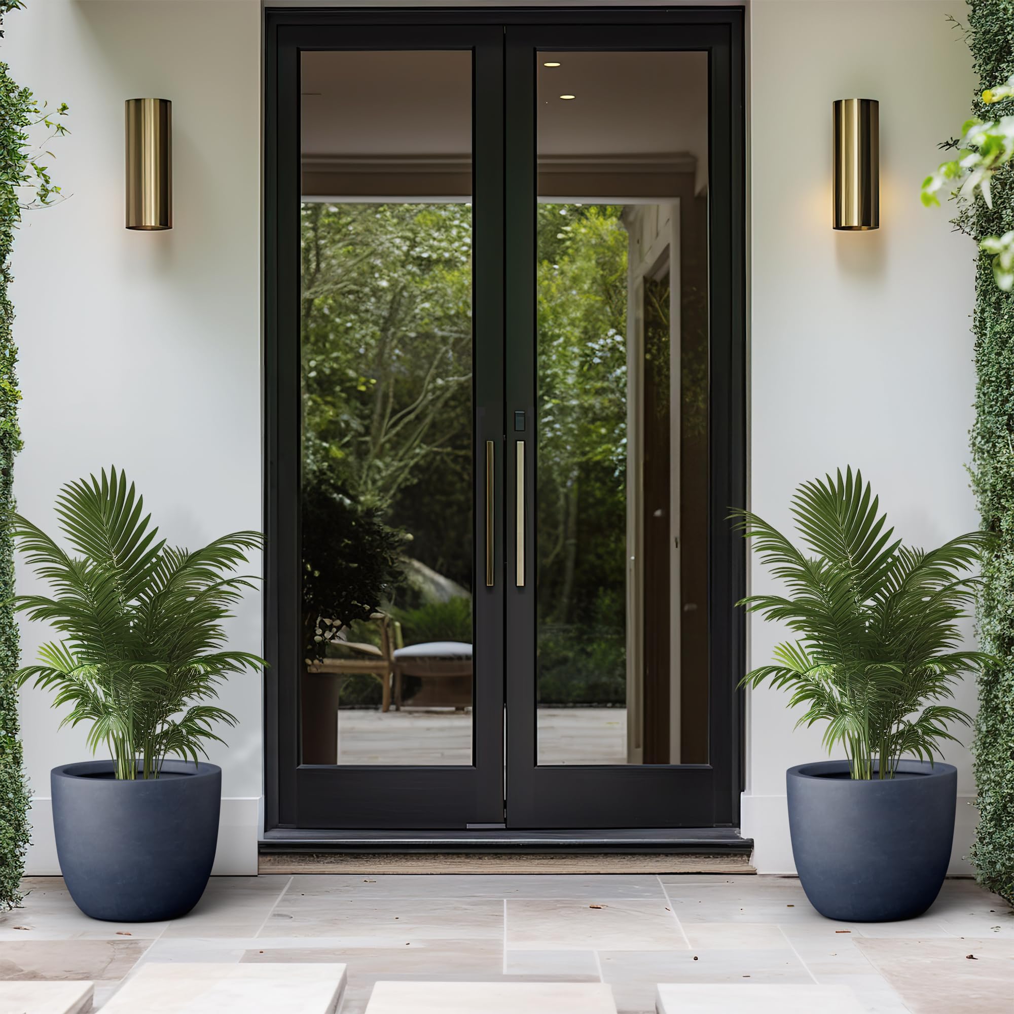 Kante AC0050B-60121 Übertopf aus Beton, modern, für drinnen und draussen, rund, 30,5 cm hoch, Dunkelgrau