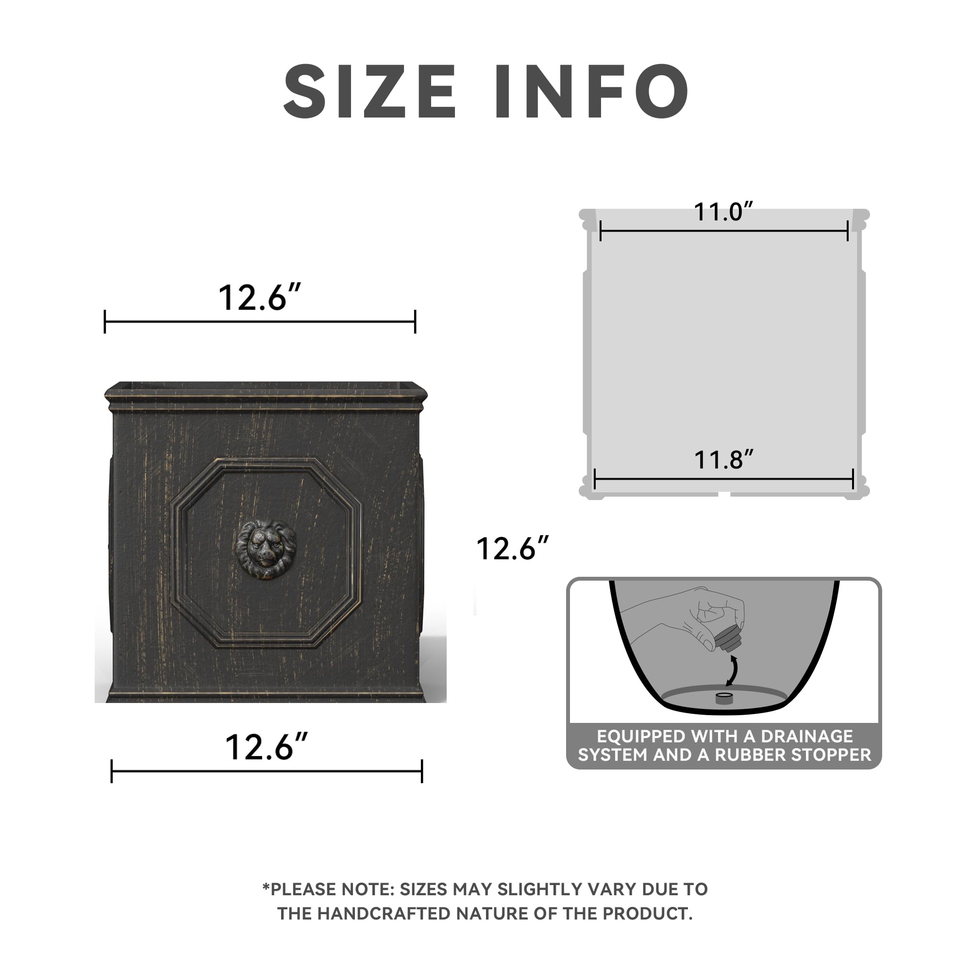Kante Quadratischer Löwenkopf-Pflanztopf aus Beton, klassischer englischer Stil, Pflanztopf mit Ablaufloch und Gummistopfen für drinnen und draussen, Garten, Terrasse, Zuhause, 32 x 32 x 32 cm,